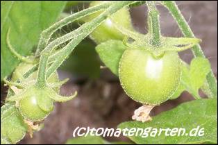 in 2011 kleine aber aromatische Früchte durch Gießwasserreduzierung und ausschließlicher Düngung mit Brennesseljauche; gesunde Pflanze mit teils ausgeprägter Spitze