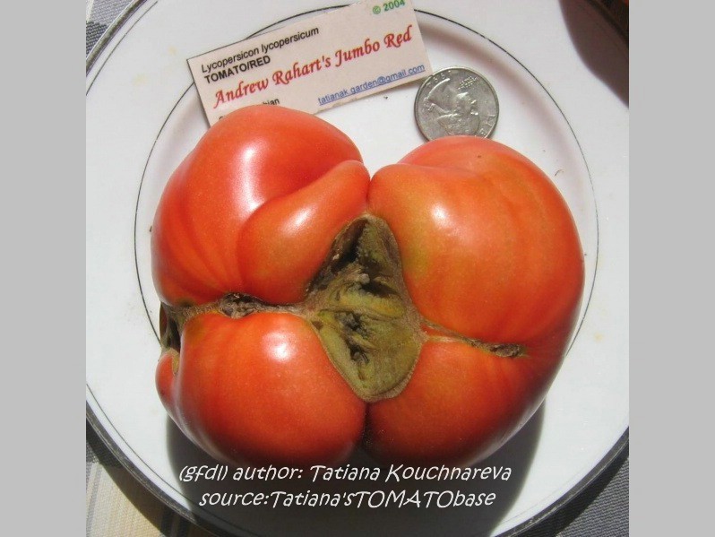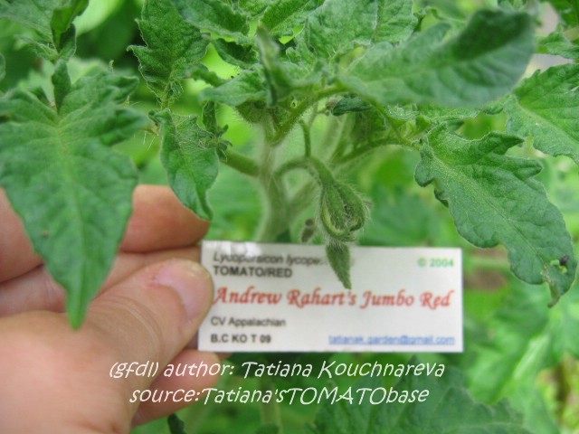 Andrew Rahart's Jumbo Red setzt bei uns viele, zwischen 200 und 400 Gramm schwere Früchte an, die eher spät abreifen.