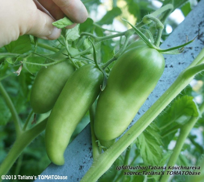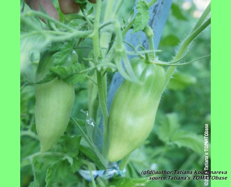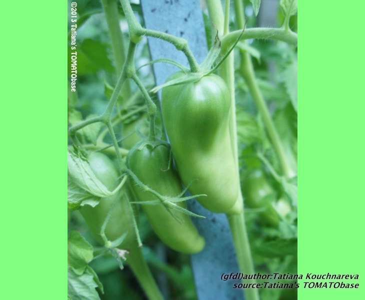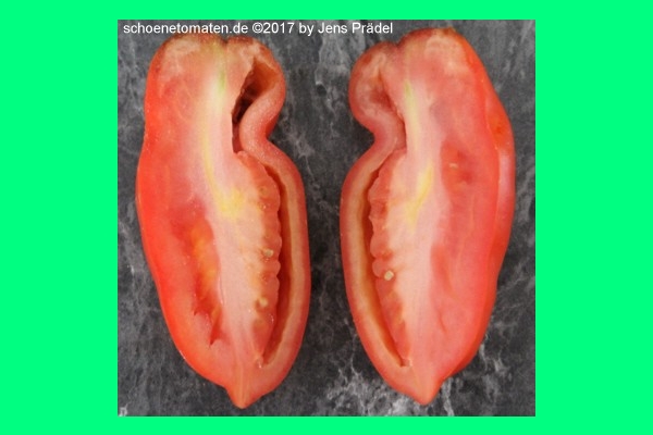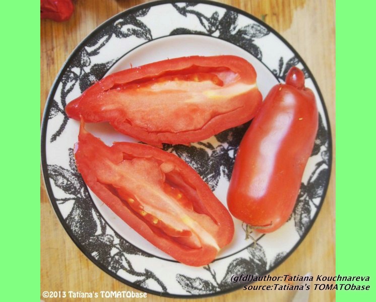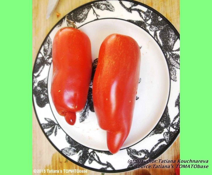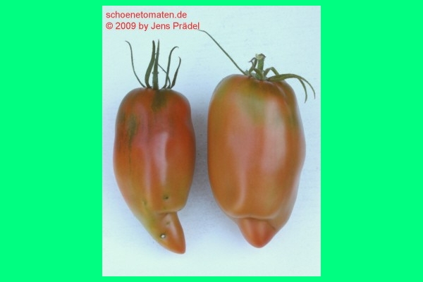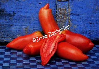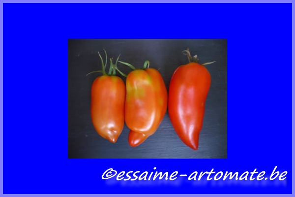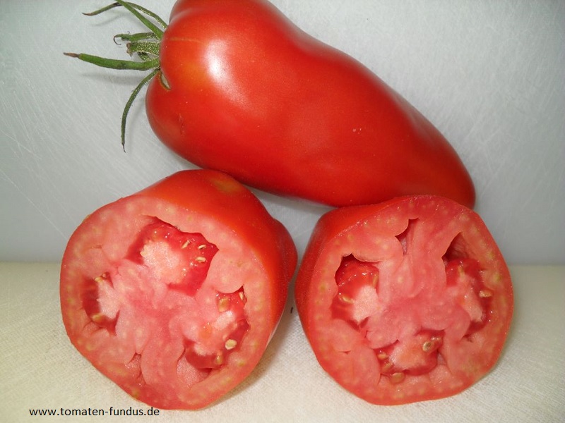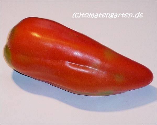 Die eher spät reifenden Tomaten haben die Form einer Paprikaschote mit einer ausgeprägten Spitze. Die etwa 250 g schweren Früchte sind hohlwandig, sehr fleischig, enthalten kaum Samen und schmecken ausgesprochen lecker tomatig. Auch sind sie nicht so saftig, weswegen sie ausgezeichnet für Sardenaira oder ähnliche Gerichte verwendbar sind.