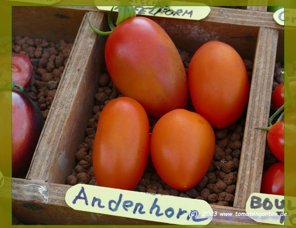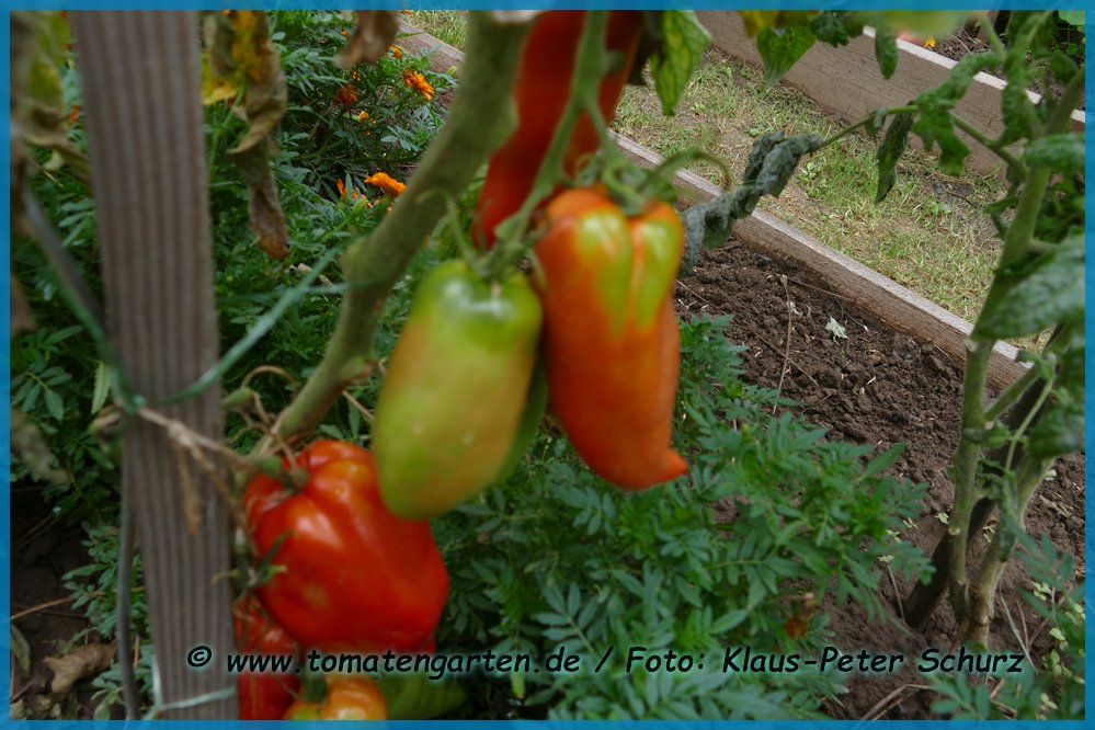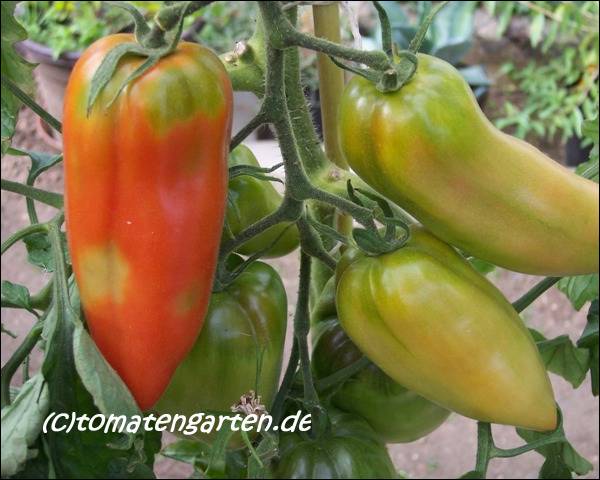 für uns ist die Andenhorn die beste Tomate, roh aufgeschnitten, als Sugo (Pastasoße) und zum Trocknen für pomodori secchi wir haben sie hier auf dem italienischen Markt kennengelernt, bekommen sie mittlerweile aber nur auf Vorbestellung, sie gedeiht einfach prächtig unter toscanischer Sonne und entwickelt ein wunderbares Aroma