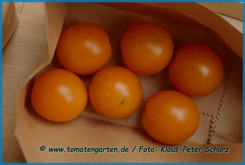 kleine (ø 4,5 cm), 30 bis 40 g schwere, runde, leuchtend orangefarbene Früchte