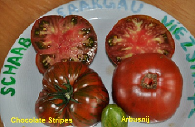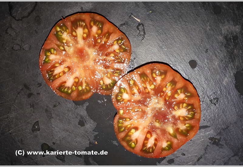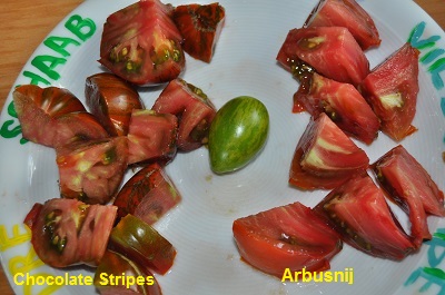 Arbuznyi ist einer meiner Standardsorten. Mehrtriebig gezogen ernte ich ab August kiloweise.
