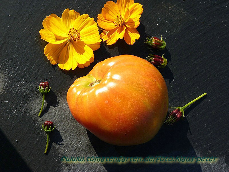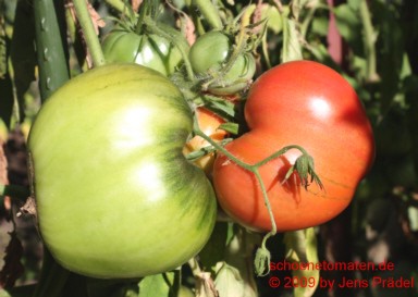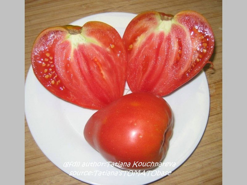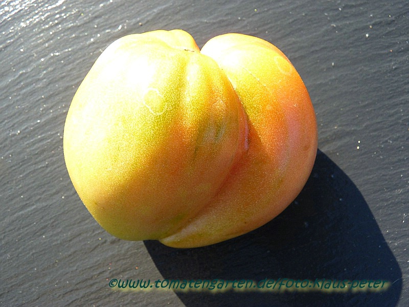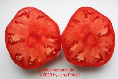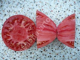 sehr große (ø bis 12 cm), breitrunde bis herzförmige, rosarote Früchte