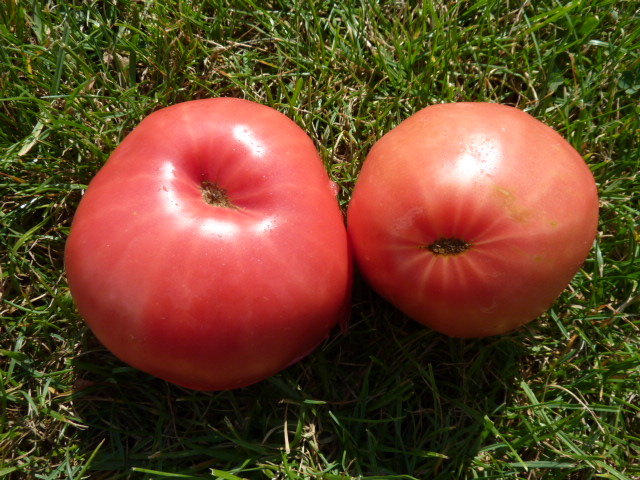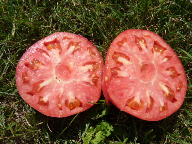 heute habe ich die erste reife Tomate geerntet. Die Beere ist rot-pink würde ich sagen. Es ist eine schöne große Fleischtomate mit süß-aromatischem Aroma. Leider habe ich kein vernünftiges Foto hin bekommen. So muss ich für das nächste Foto auf die nächste reife Tomate warten. In der Tomate, es war die erste an dem Strauch, war nicht ein einziger Kern drin. Leider habe ich zur Zeit auch noch Probleme mit der Blütenfäule. Anscheinend habe ich es mit der Kompostdüngung zu gut gemeint. Ich erhoffe mir eine Besserung durch den Einsatz von Urgesteinsmehl.