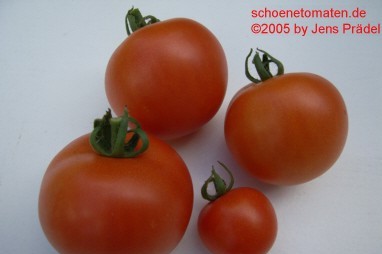 Apollo - große Pflanze (2 m) mittelfrüher Erntebeginn (Mitte August) guter Ertrag relativ kleine, hellrote, runde Früchte sehr gleichmäßige Größe (40 bis 60 g) normaler, angenehmer Geschmack (Quelle: www.schoenetomaten.de)
