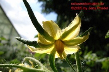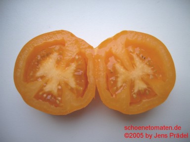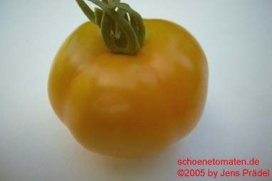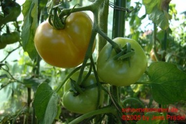 Ambre - mittelgroße Pflanze (1,5 bis 2 m) sehr später Erntebeginn (Anfang September) geringer Ertrag (Braunfäulebefall) mittelgroße bis große (bis 100g),breitrunde, leicht kantige, dunkelgelbe bis orange Früchte tomatiger Geschmack, saftig (Quelle: www.schoenetomaten.de)