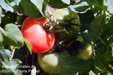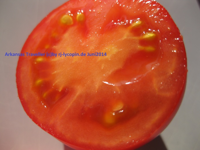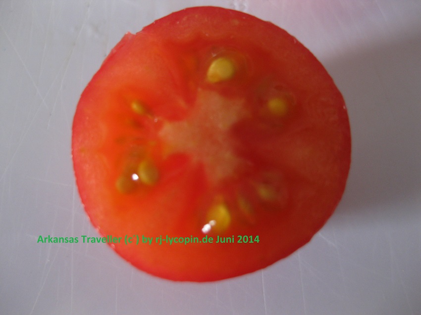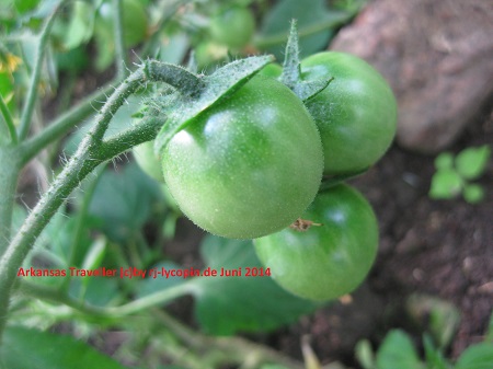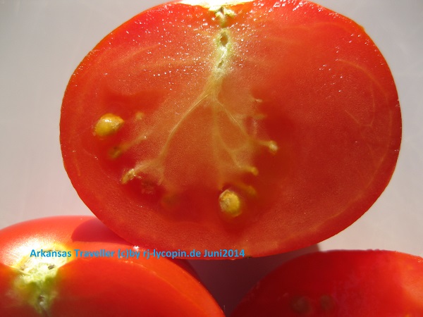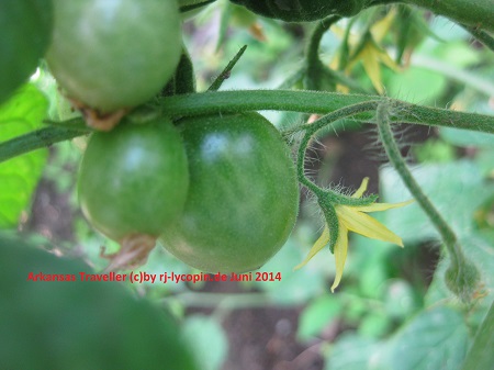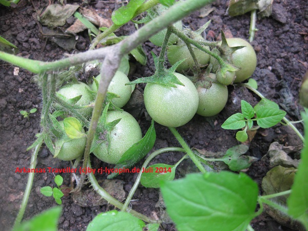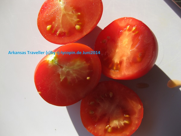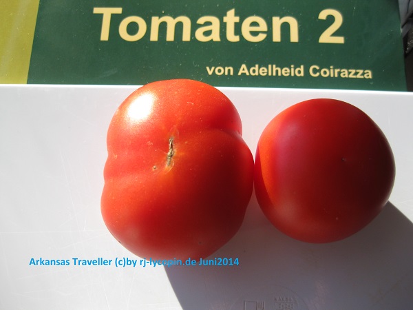 Arkansas Traveller - große Pflanze (bis 2 m) später Erntebeginn (Mitte August) mäßig tragend große, runde, hellrote Früchte guter Geschmack (Quelle: www.schoenetomaten.de)