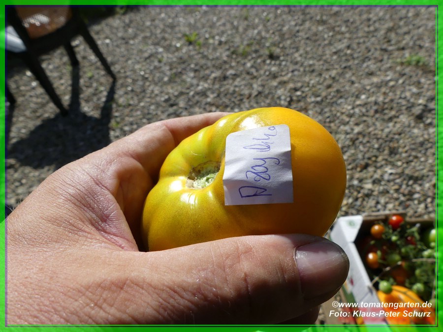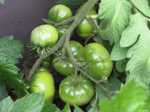 Konkretisierend zum informativen Kommentar #1 möchte ich hier zum Ernteertrag hinzufügen, dass bei meiner gut geführten Kultur JEDE Pflanze 40 - 50 Tomaten mit einem Gewicht von 310 - 496g erbrachte, mithin beeindruckende 16 - 20 kg! Die Pflanzen sollten eintriebig gezogen werden, um die Gesundheit der stark tragenden Pflanzen zu fördern. Ferner ergibt sich so ein um eine Woche früherer Erntebeginn als bei Zweitriebigkeit. Bei zweitriebig gezogenen Pflanzen ist das Fruchtgewicht kleiner als oben angegeben.