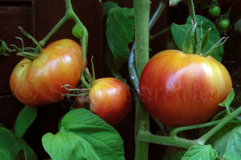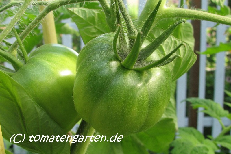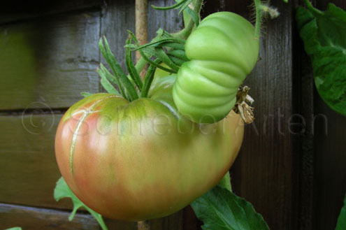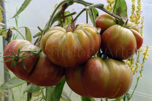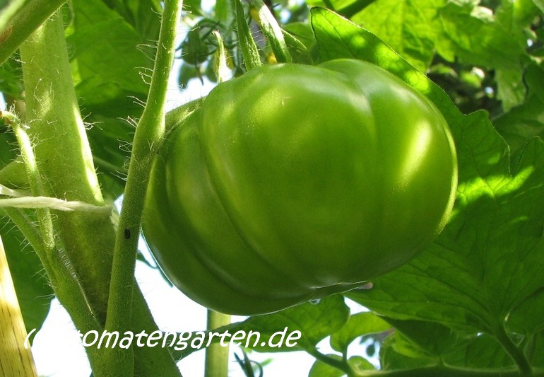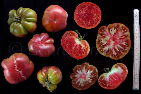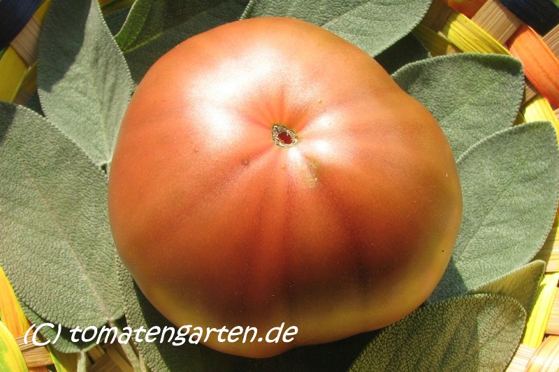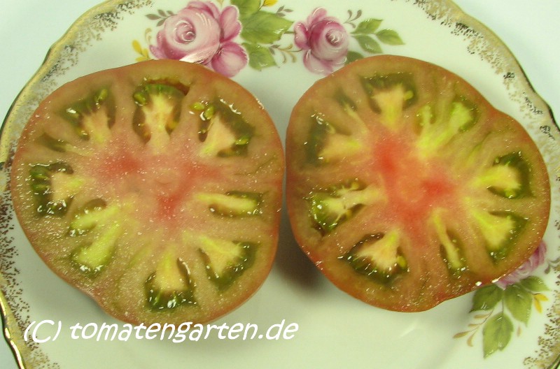 Habe diese Sorte von M.Hahm bekommen und schon mehrmals angebaut. Besonders gefällt mir kräftige Wuchs und der hohe, zeitlich gut gestaffelte Ertrag. Eine Überraschung ist immer wieder das Aufschneiden dieser Tomaten - die äußerlich unansehnliche, grünkragige, graubraunrote Frucht ist innen leuchtend rot. Jan. 2009