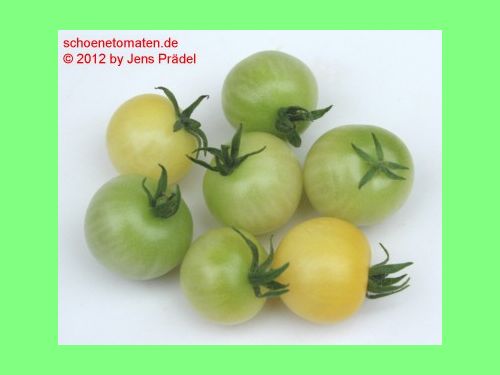 kleine (ø 2,5 bis 3,5 cm) und ca. 10 bis 20 g schwere, runde, hellgelbe Früchte