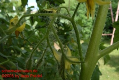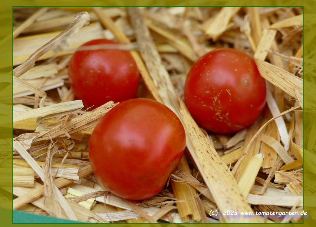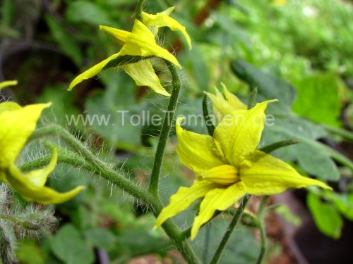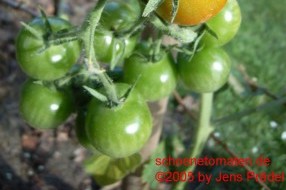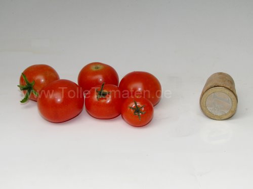 Besser - große Pflanze (2 bis 2,5 m) sehr später Erntebeginn (Ende August) geringer Ertrag kleine (12 bis 20 g), rote, runde Früchte süßer Geschmack (Quelle: www.schoenetomaten.de)