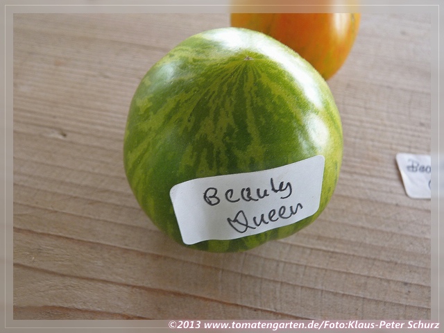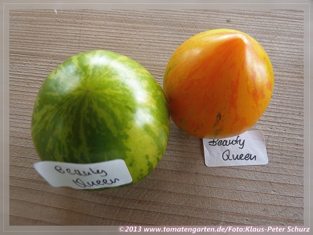habe heuer,2008, zum ersten Mal 'Beauty Queen' angebaut (Samen von M.Hahm). Pflanzen waren uneinheitlich bezüglich Fruchtgröße - es gab eine Pflanze mit kleineren, kugeligen, zweikammrigen Früchten und zwei Pflanzen mit flachrunden, vielkammrigen Früchten(wie auf meinem Foto). Gefallen hat mir bei allen Pflanzen die wunderschön gefärbte Frucht, der hervorragend aromatische Geschmack und die weit gestaffelte Reifezeit der Früchte (Juli - Okt.)