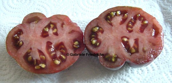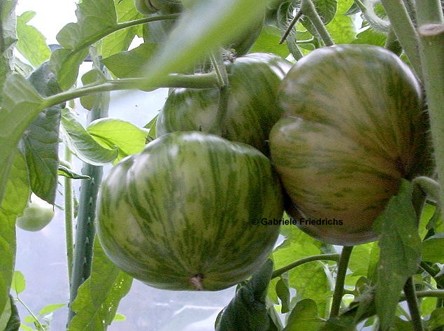 Wunderbar würzige und bildschöne Tomate. Sehr ertragreich und unempfindlich. Unter Foliendach angebaut.