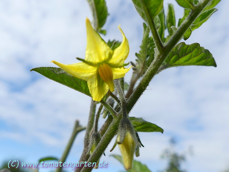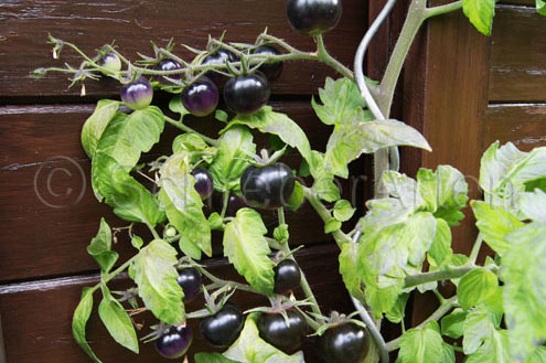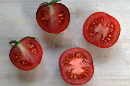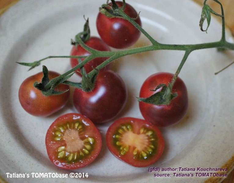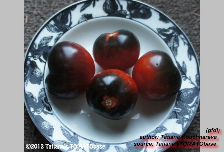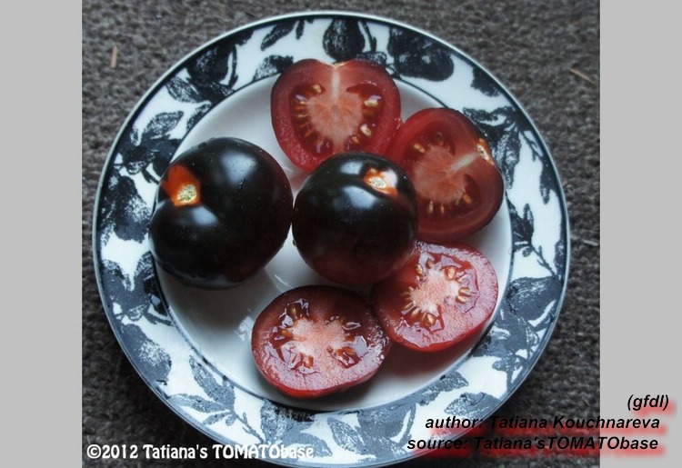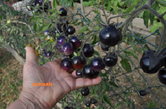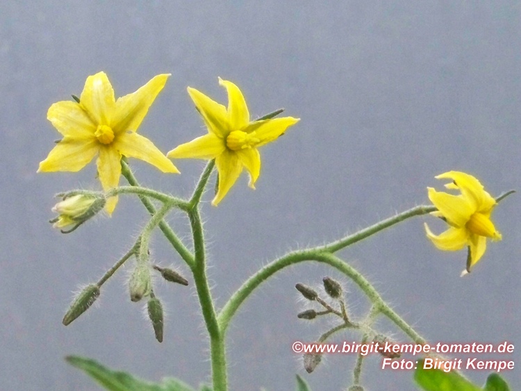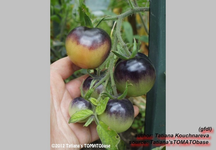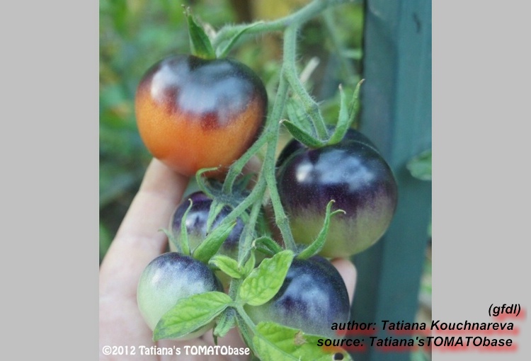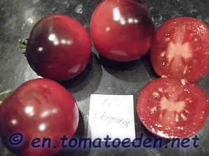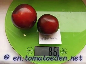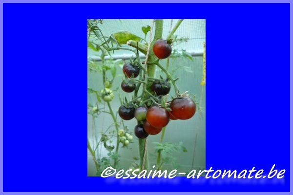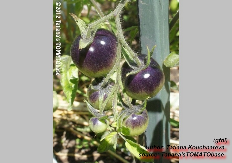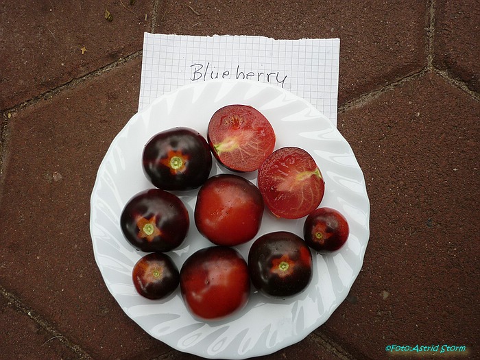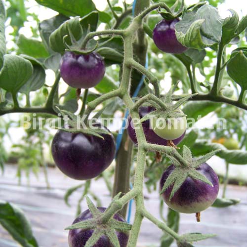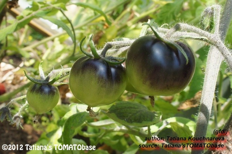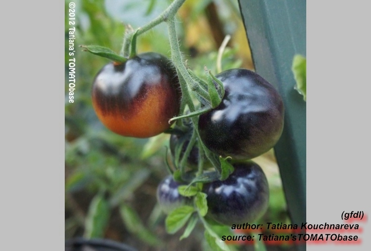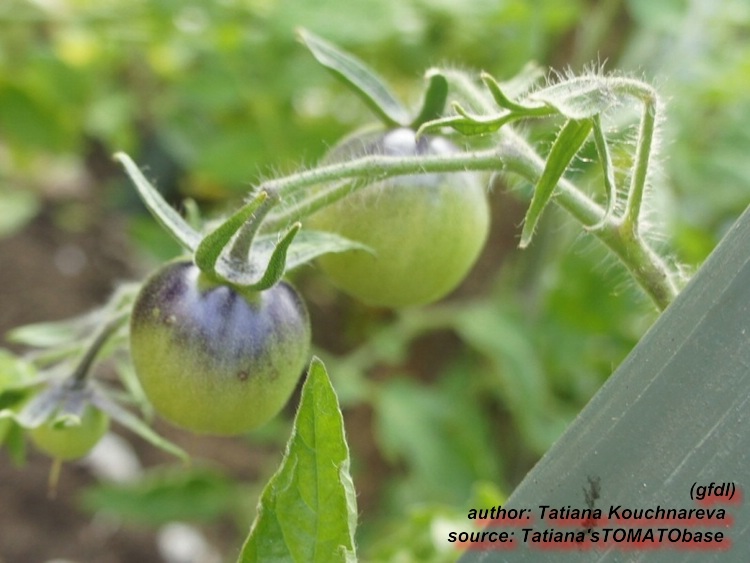 Angebaut 2021 und 2022 im Freiland mit Überdachung. Wunderschöne, glänzende Früchte, die sich Anfang Juli ausbilden, aber sehr lange zum Ausreifen benötigen. Erste Ernte Ende August. Geschmacklich ziemlich fade, aber im Salat ein Hingucker. Pflanze ca. 1,50m hoch. Saatgutarm.
