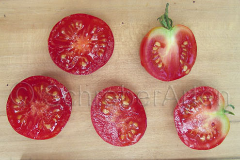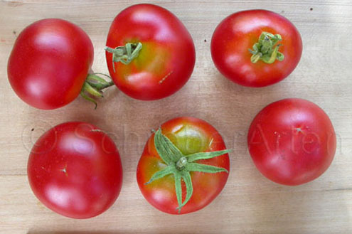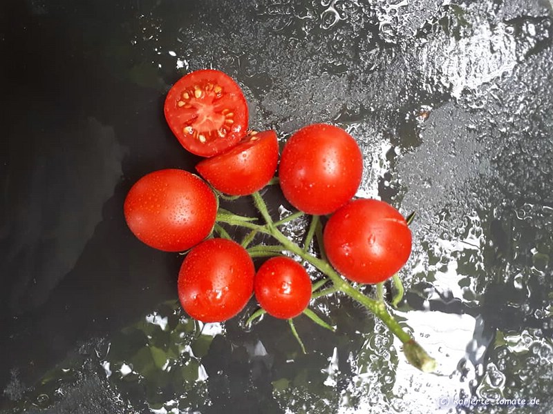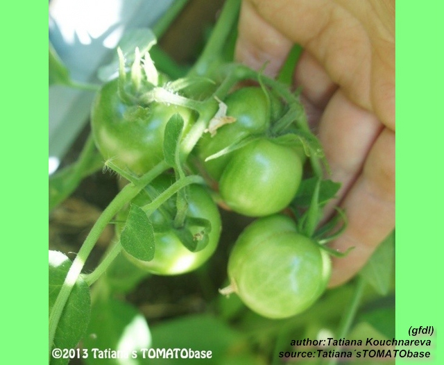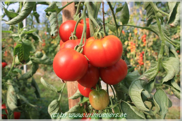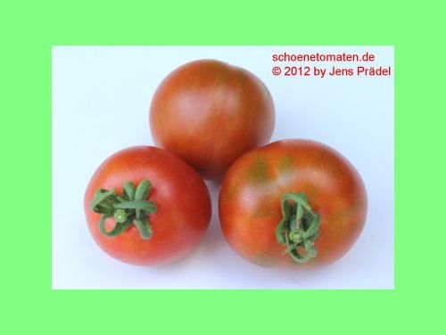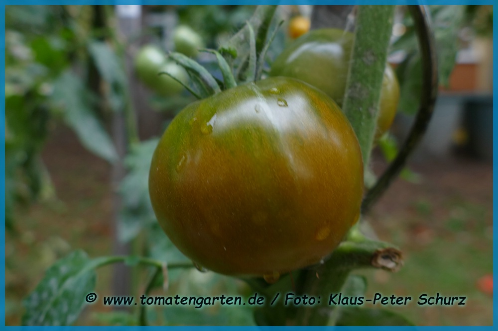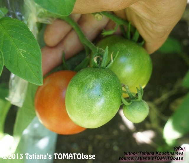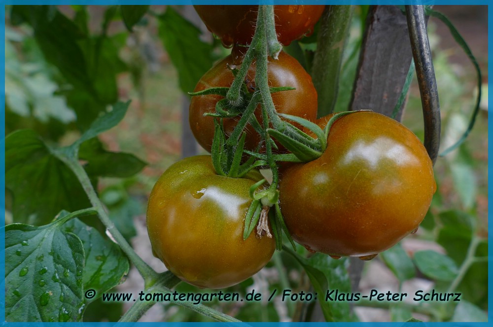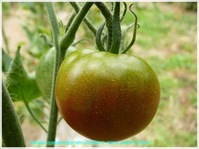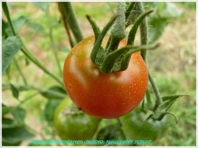 Die Sorte hatte ich 2008 und 2009 im Anbau. Das Saatgut kam in 2008 von Manfred Hahm, in 2009 von tradewindsfruit aus den USA. In beiden Jahren hat die Sorte voll überzeugt. Sie wächst ca. 150-180cm hoch und hat riesengroßes Kartoffellaub. Die kleinen Früchte von der Größe eines Golfballs schmecken süß und gleichzeitig würzig aromatisch. Die Ernte kann bereits Anfang Juli beginnen. Ernte ist reichlich, aber nicht bis zum Frost. Aus meinen Erfahrungen heraus ist die Pflanze eher determinant, auch wenn sie relativ hoch wächst und sich stark verzweigt. Nennt man das semi-determinant??!! Die Pflanze ist sehr robust. Insgesamt eine Anfänger-Tomate, die Neulinge garantiert mit dem Tomaten-Virus infizieren wird.