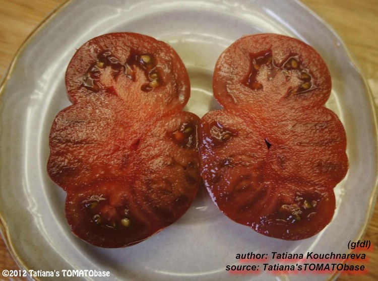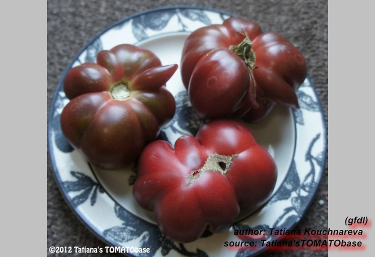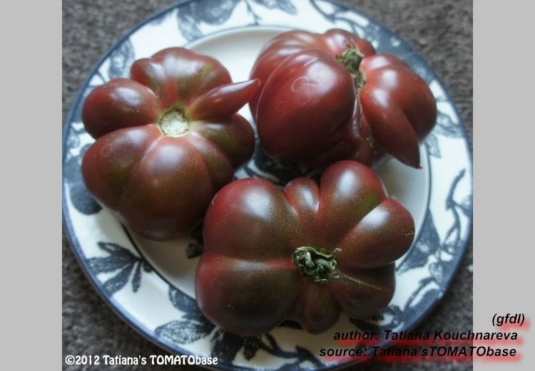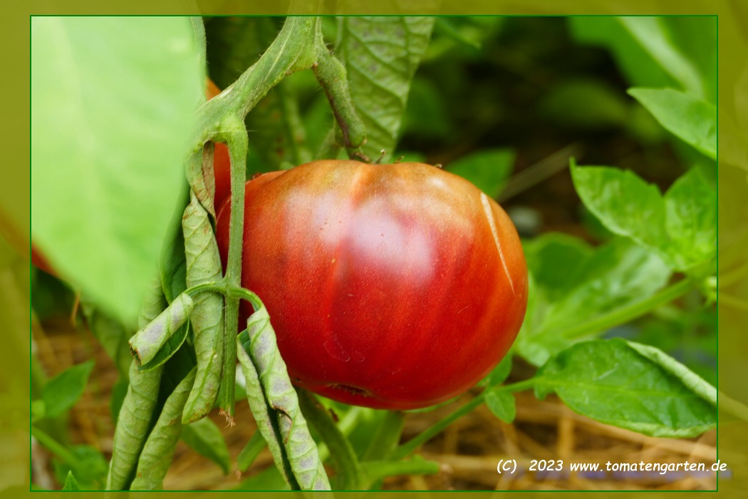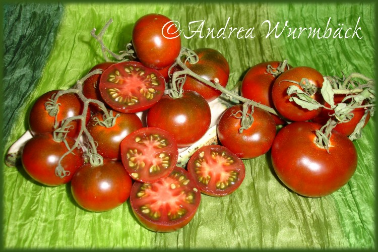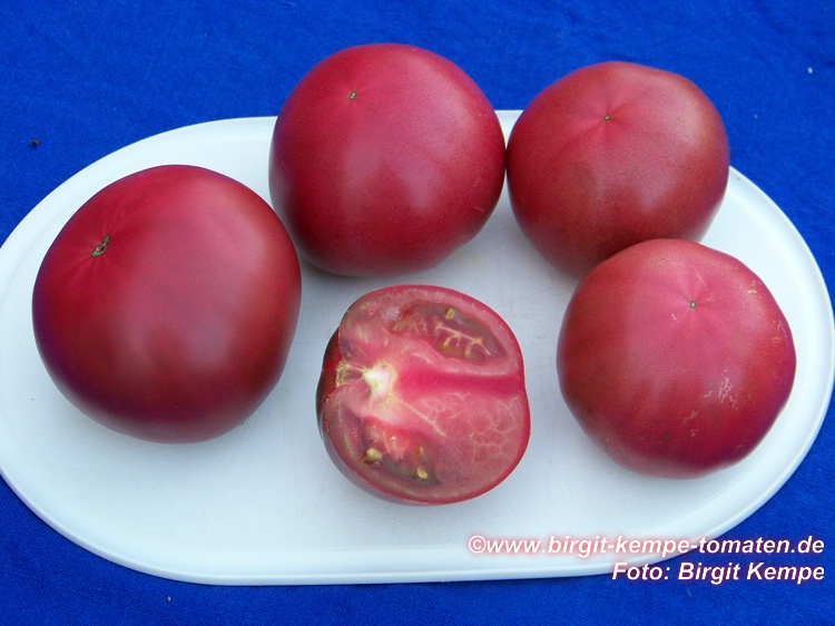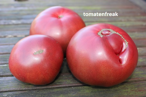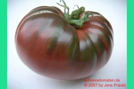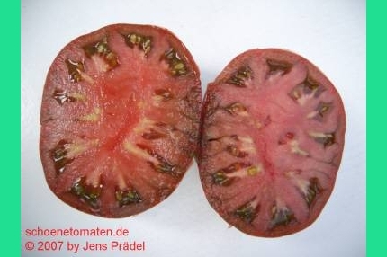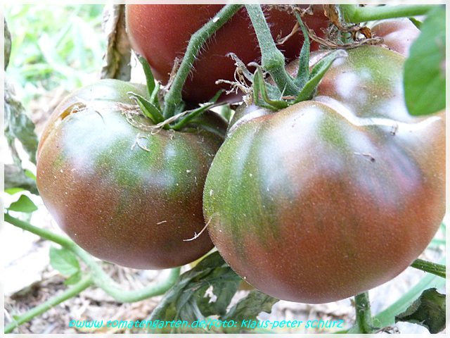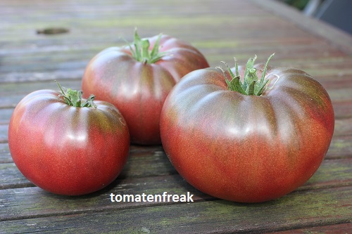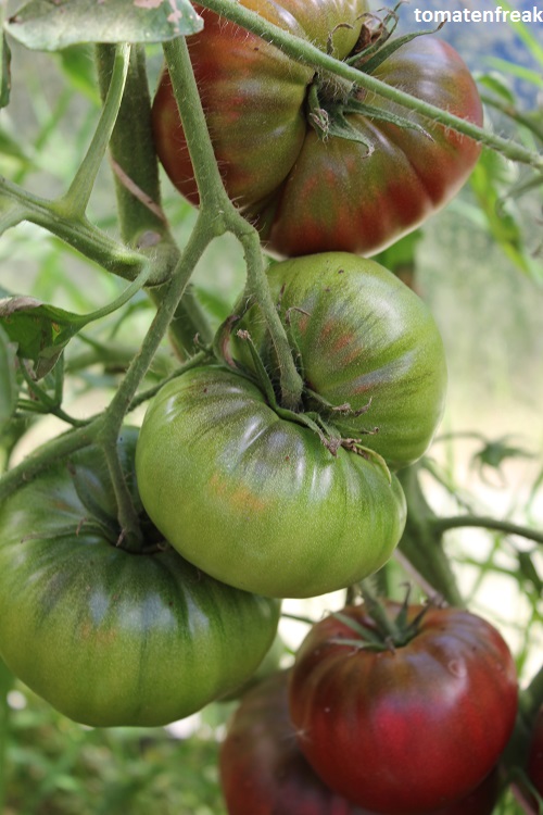 Top Geschmack .Ähnelt in Fruchtform ,Größe und Farbe stark meiner lieblingssorte Black from Tula .Auch der Geschmack ist ähnlich ,also auch top .Die Früchte haben nicht so einen ausgeprägten grünen Kragen ,wie B.v.Tula und platzen nicht so schnell .Eine Sorte ,die auch in Märkten unter historische Sorten vertrieben wird .Wird diese jahr wieder angebaut .