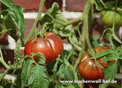 Kältetoleranz scheint der 'Black Krim' durch ihre russische Herkunft in die Wiege gelegt. Bei uns gedeiht sie im Freiland stets wesentlich besser und gesünder als im Gewächshaus. Ihre Früchte sind schmackhaft, wunderbar würzig und erreichten eine Größe von 100-400 Gramm.