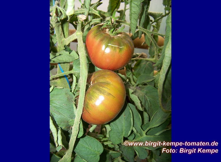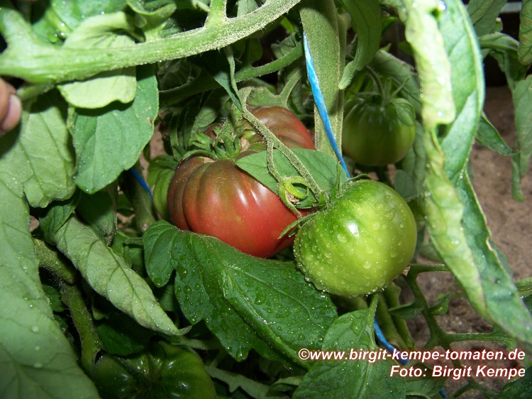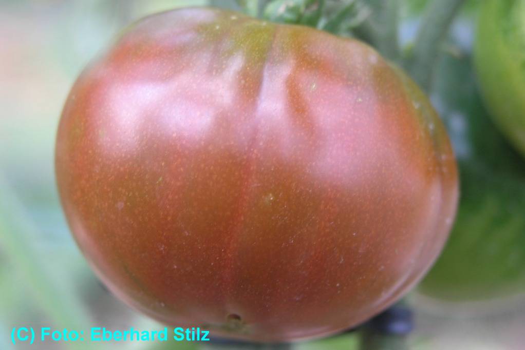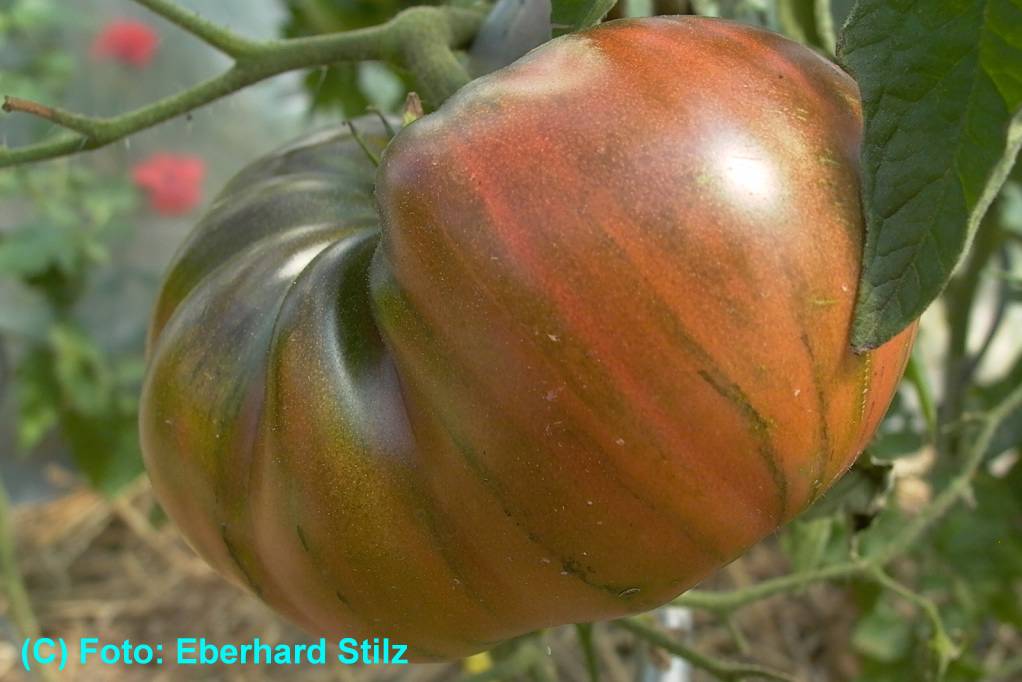 Black from Tula - große Pflanze (bis 2 m) früher Erntebeginn (Anfang August) mittlerer Ertrag große, leicht gerippte, schwarzrote Früchte sehr saftig, leckere Sorte (Quelle: www.schoenetomaten.de)