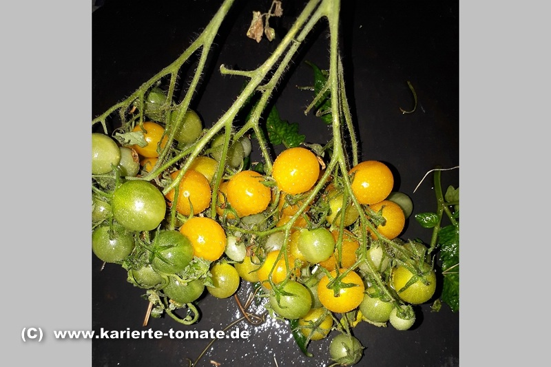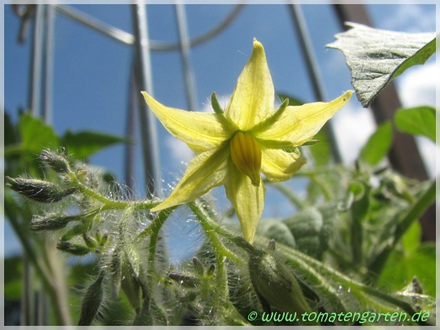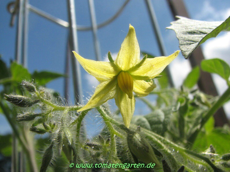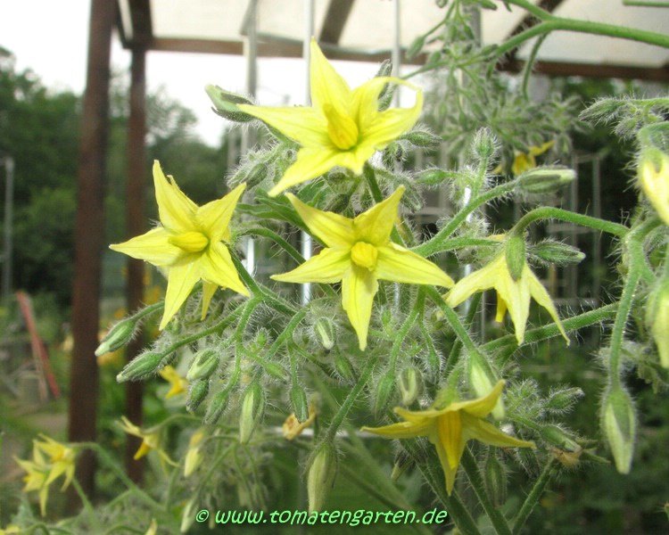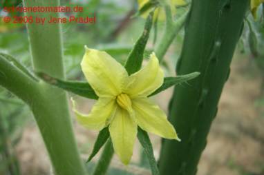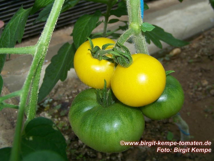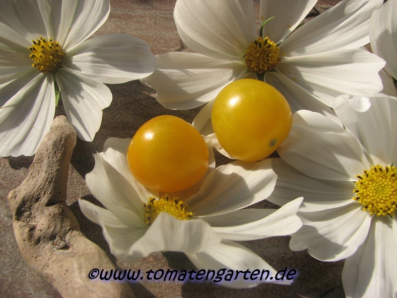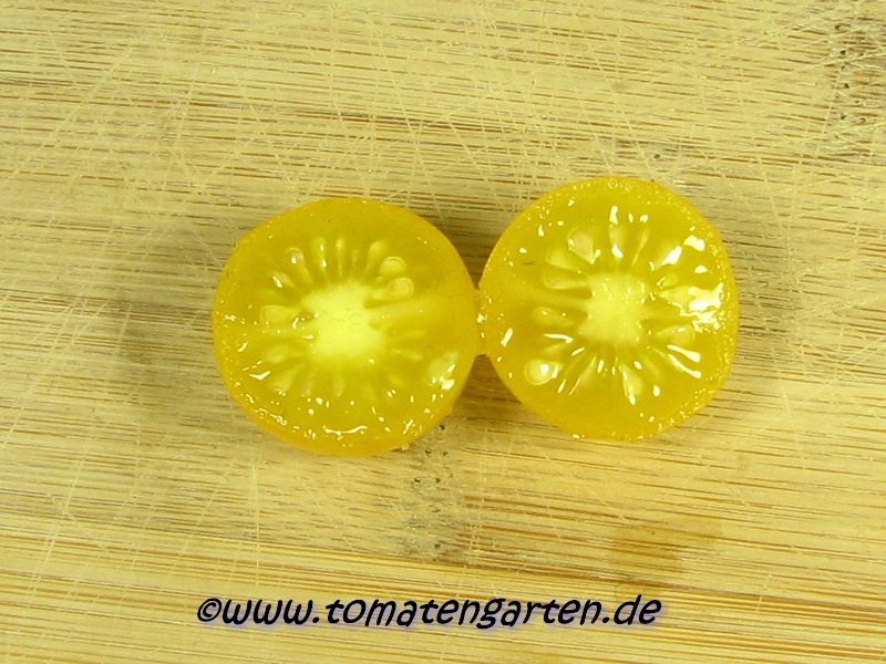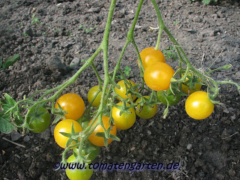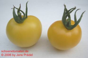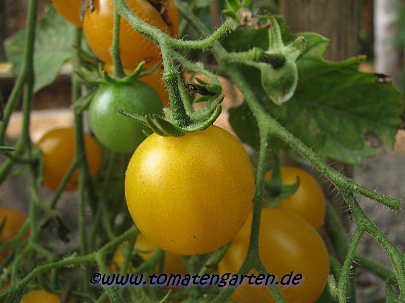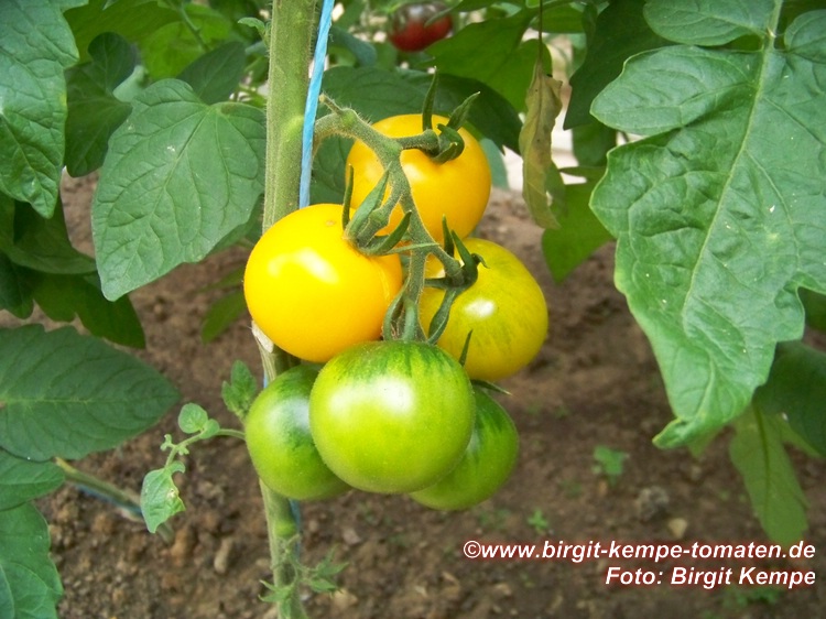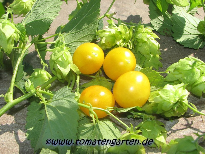 Blondköpfchen - mittelgroße Pflanze (1,5-2 m) mittelfrüher Erntebeginn (Mitte August) guter Ertrag mittelgroße (ø 5 cm), hellgelbe, runde Früchte sehr gleichmäßige Früchte in Form und Größe (ca. 50 g) angenehmer milder Geschmack (Quelle: www.schoenetomaten.de)