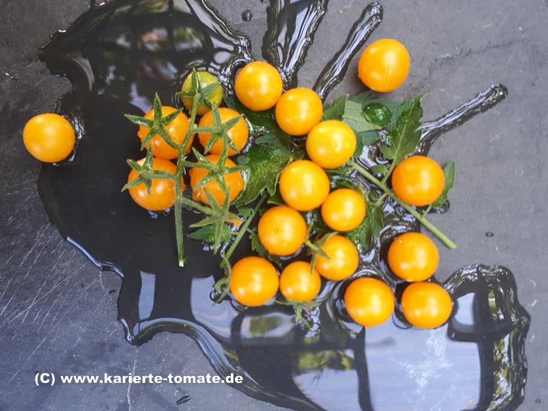 Wunderbar süße reichtragende und robuste Tomate zu Naschen direkt vom Strauch. Verträgt auch Trockenheit gut. Die Früchte lassen sich leider etwas schwer pflücken und man muß aufpassen, sie nicht dabei zu zerdrücken. Ich planze immer irgendwo im Garten wo noch Platz ist und überlasse die Pflanze bis auf gelegentliches Gießen sich selbst.
