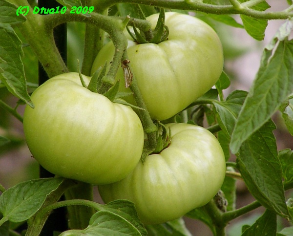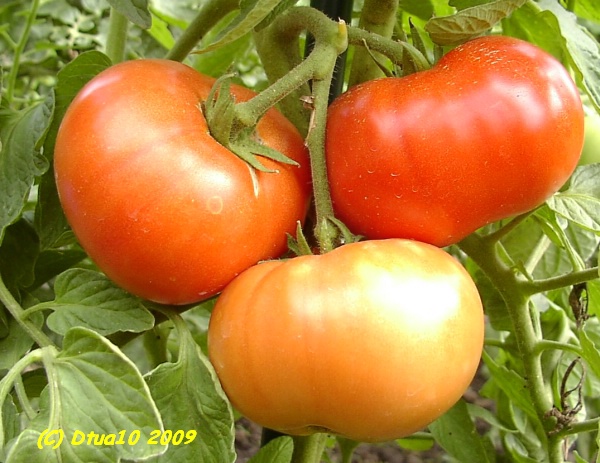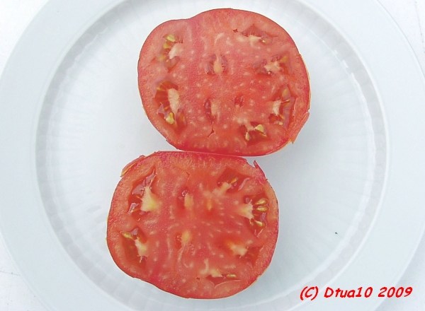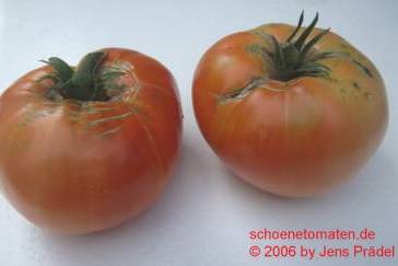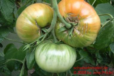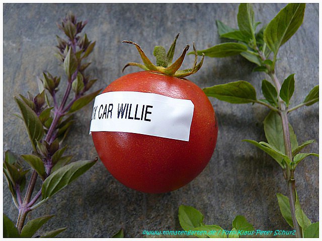 Box Car Willie - sehr große Pflanze (bis 2,5 m), kartoffelblättrig mittelfrüher Erntebeginn (Mitte August) guter Ertrag sehr große, breitrunde, gleichmäßige, rote Früchte, nicht ganz platzfest größte geerntete Frucht: 544 g kräftiger, würziger Geschmack, unzählige Fruchtkammern (Quelle: www.schoenetomaten.de)