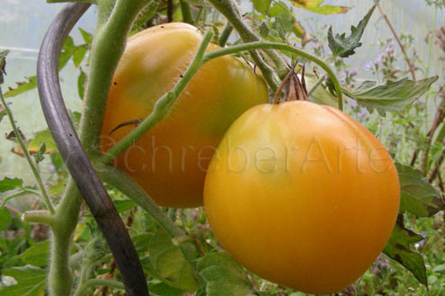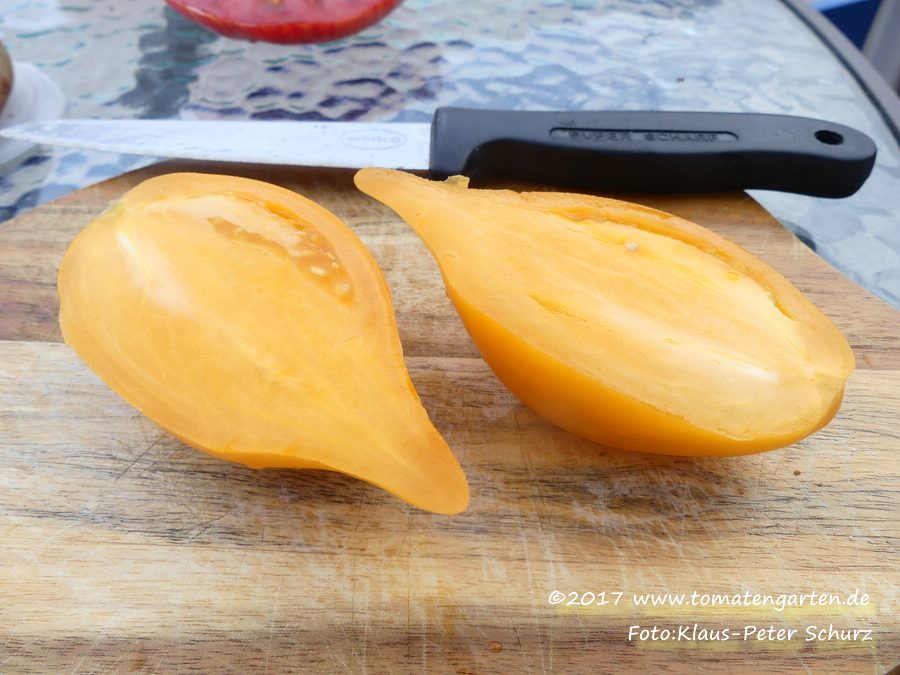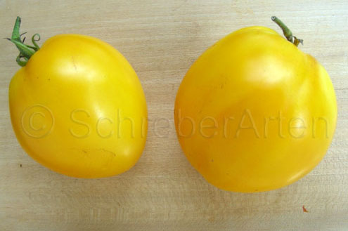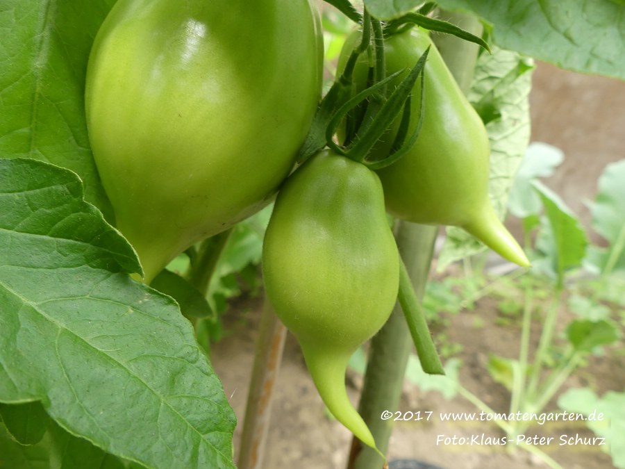 Pflanzen determiniert, unter 1 m. Erstaunlich guter Ertrag für so kleine Pflanzen. Früchte unterschiedlich gross, grössere Exemplare mit Kragenkerbung. Sehr guter Geschmack.