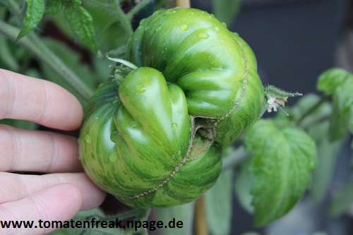 Die Black + Red Boar war bei mir grösser als 1,20 m. In etwa 1,80 m - also keine Riesenpflanze aber dennoch schon fast "normaler" Wuchs. Eine wunderschöne Tomate die auch noch geschmacklich sehr überzeugt hat. Für Fleischtomaten-Liebhaber eine Entdeckung. Allerdings ist sie als erste Pflanze im schlechten Tomatenjahr 2010 von der Kraut- und Braunfäule dahingerafft worden. Sowohl im Gewächshaus als auch im Freiland. Die im Gewächshaus früher.