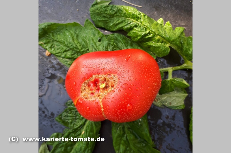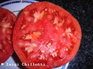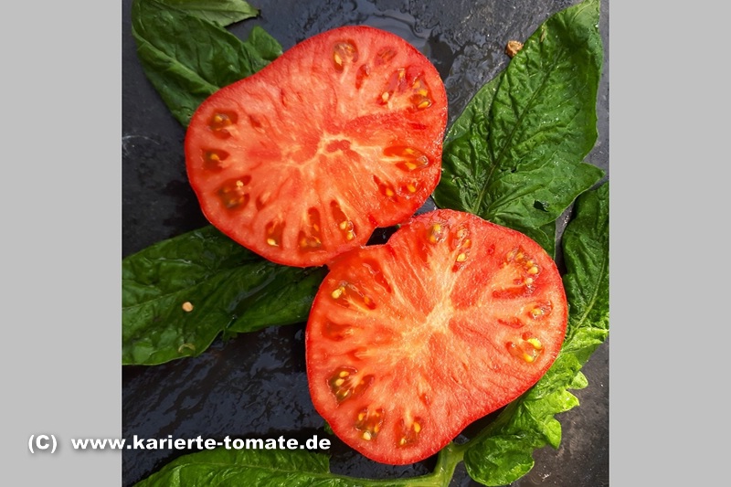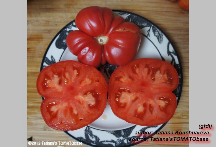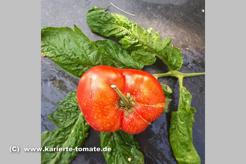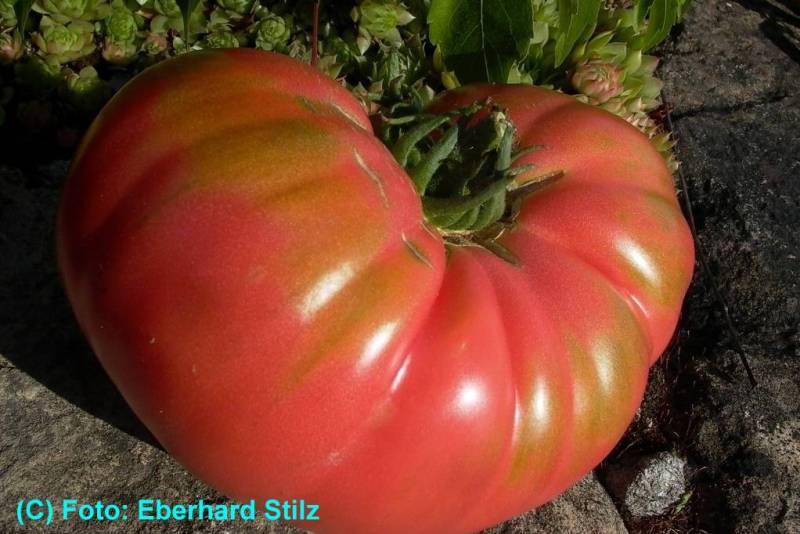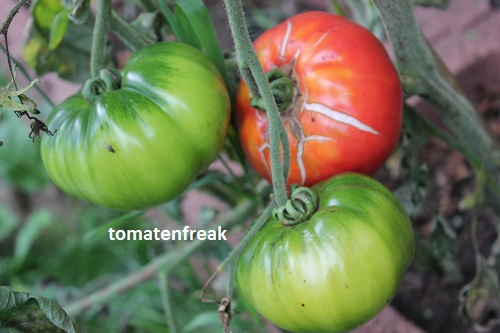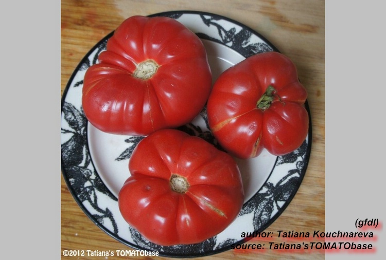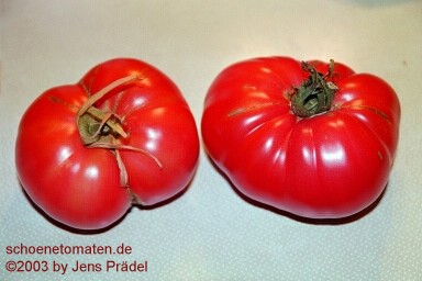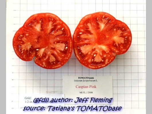 Caspian Pink - sehr große Pflanze (bis 3 m) später Erntebeginn (Mitte August) sehr großer Ertrag große, breitrunde, leicht gerippte, rote Früchte ausgezeichneter Geschmack sehr saftig, empfehlenswerte Sorte (Quelle: www.schoenetomaten.de)