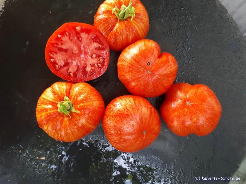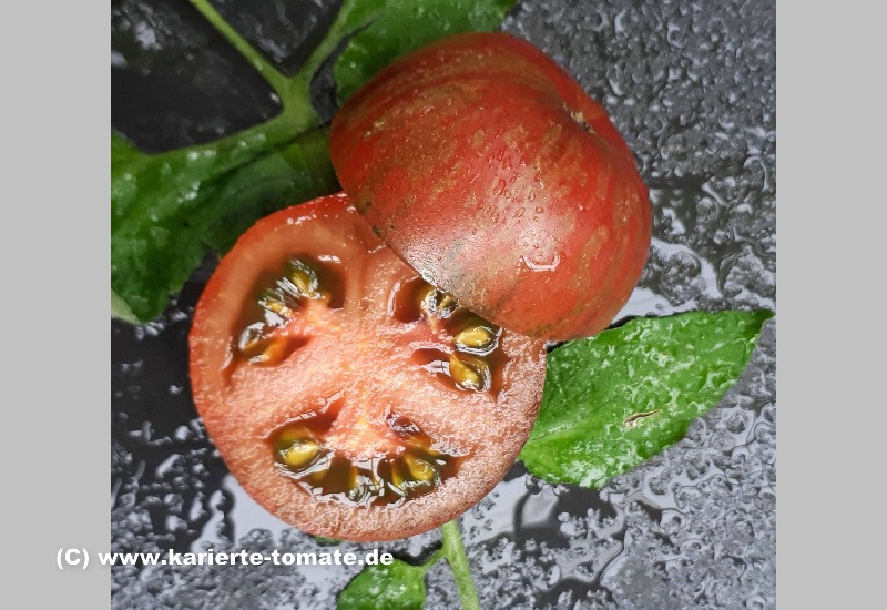 Herkunft: Auslese der Kreuzung Tigrette x Cherokee Purple, Bill Jeffers, Evansville, Louisiana, USA