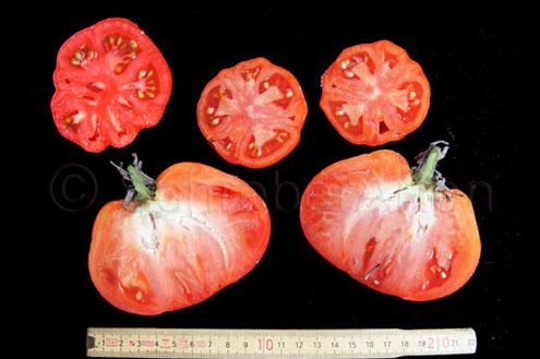 Früher und reichlicher Fruchtansatz, erste Reife schon Mitte Juli (Freiland), später spärlicher Weiterwuchs, recht früher Pilzbefall im Freiland und auch im Gewächshaus.