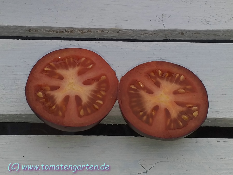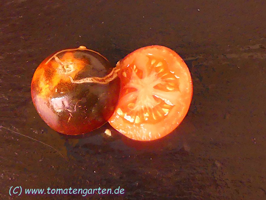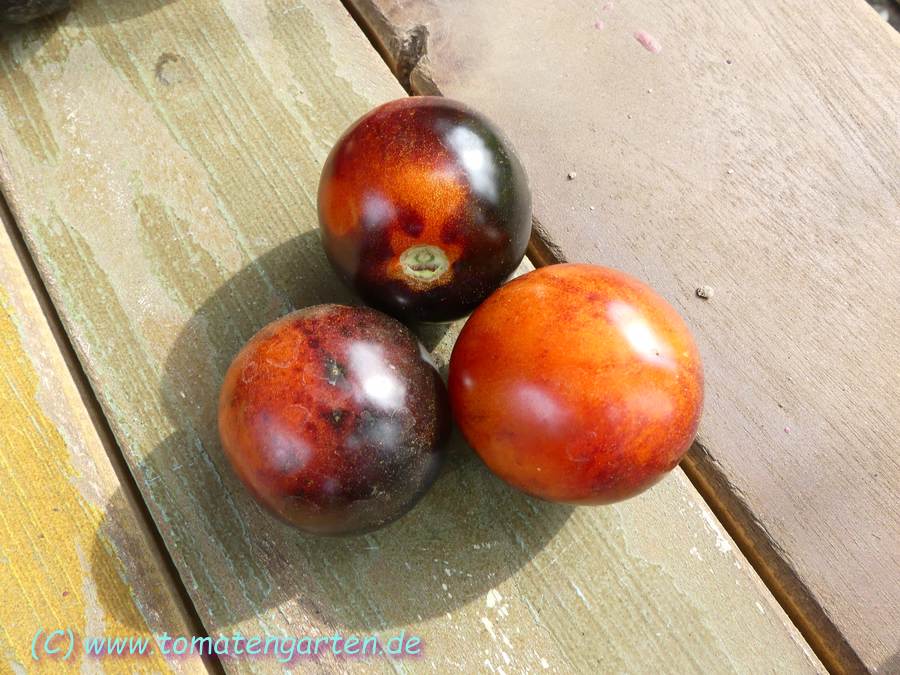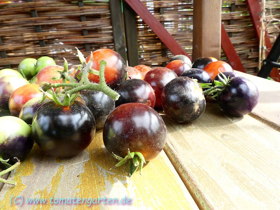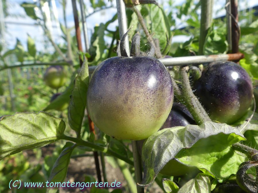 Herkunft: Kreuzung Green Zebra x unbekannte blaue Sorte, Tom Wagner, Everette, USA