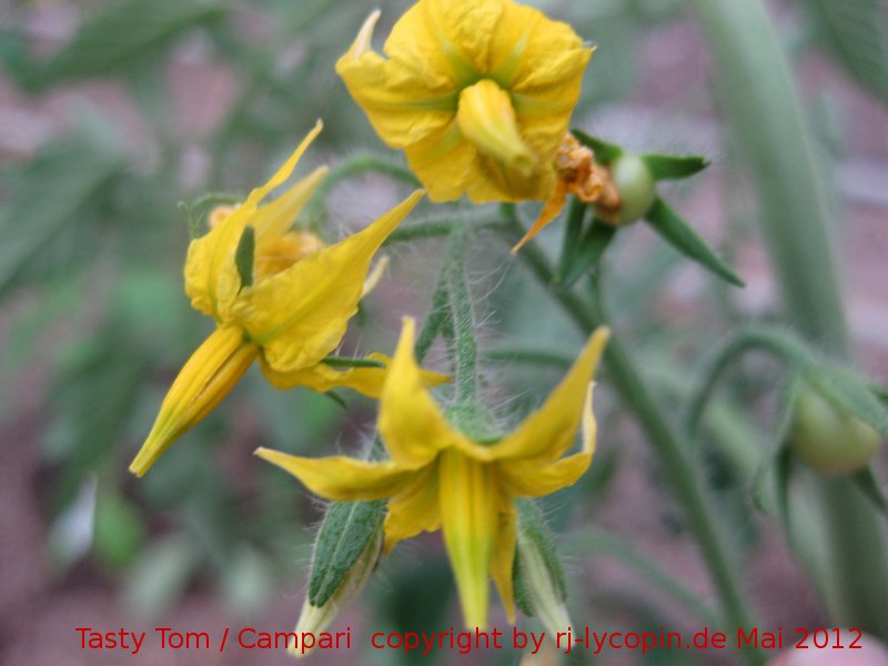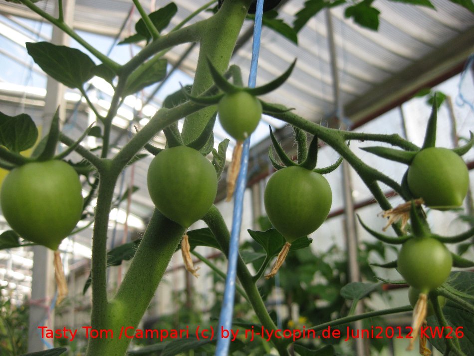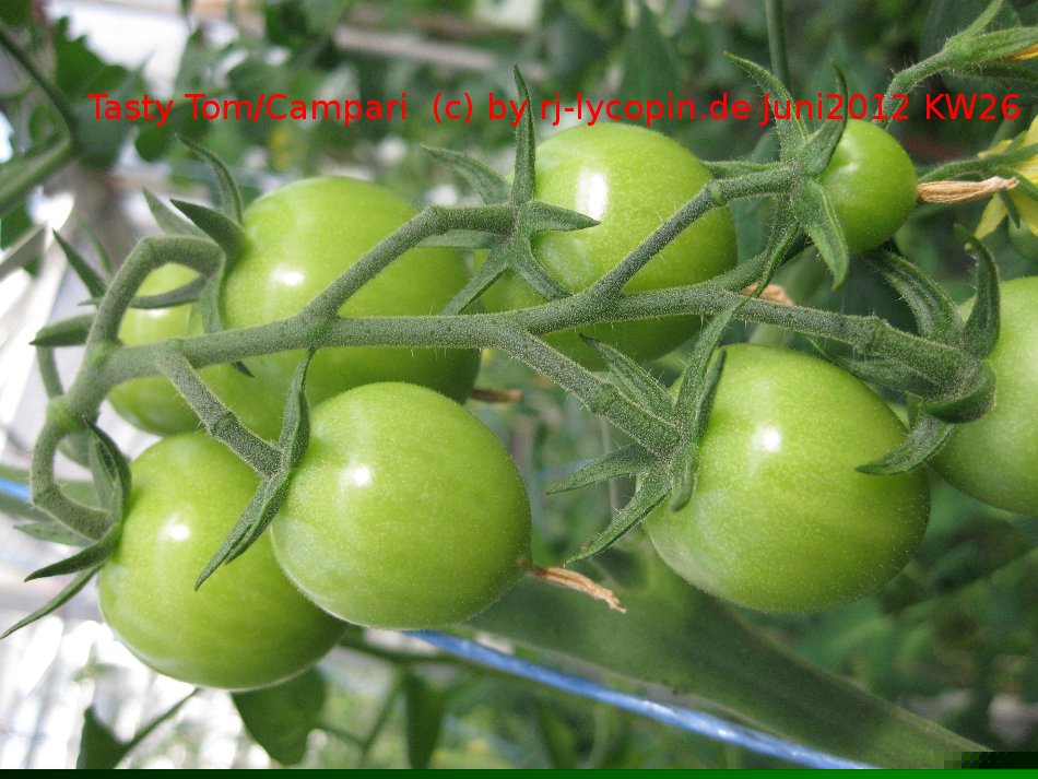 Die Tasty Tom = Campari bildet 2012 als erste Pflanze große Früchte an Rispen.Wer für 2013 Saatgut möchte, kann sich gerne an mich wenden