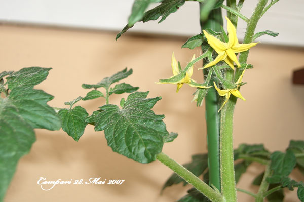 Meine veredelte Campari ist überdurchschnittlich schnell gewachsen, absolut gesund, nachdem sie in der Anfangszeit als einzige Tomatenpflanze bei mir von Blattläusen heimgesucht wurde. Benötigt mehr Wasser als andere Sorten. Kann ohne Probleme 2-triebig gezogen werden.