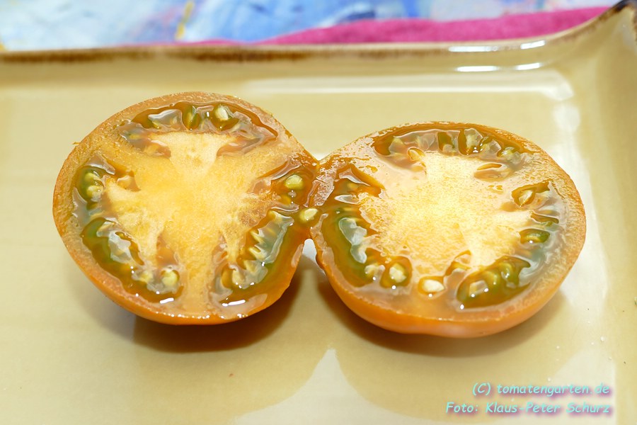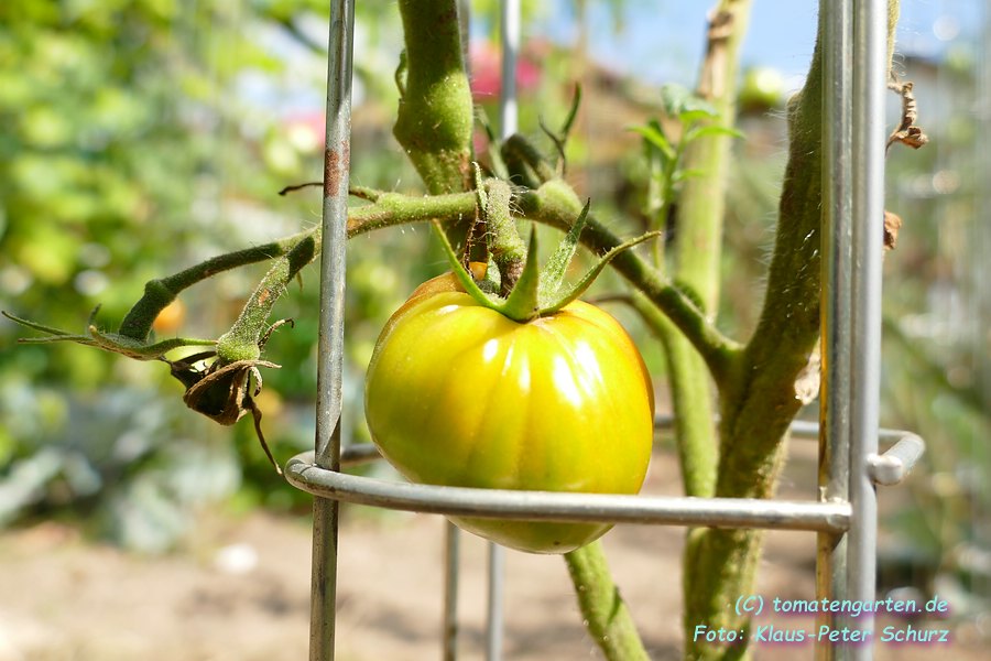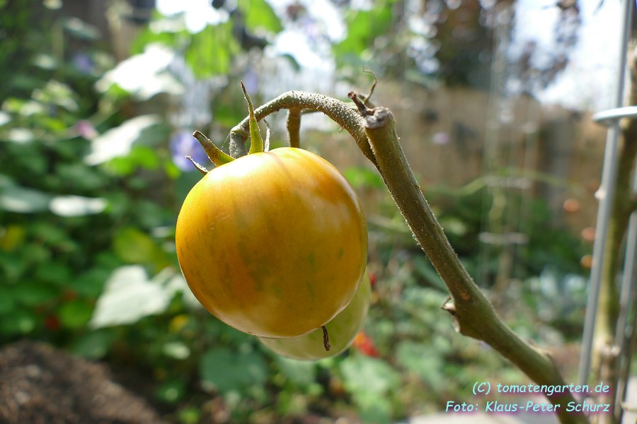 Herkunft: Kreuzung von Sundrop x Turks Turban mit Green Zebra, Tom Wagner, Everett, Washington, USA