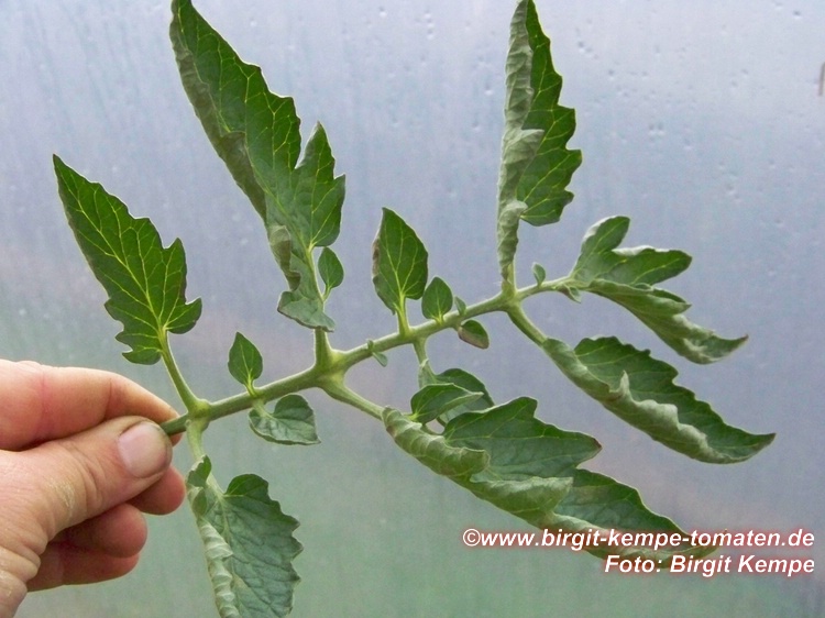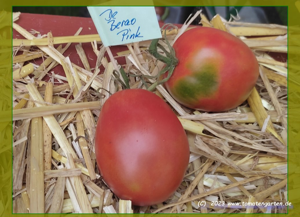 De Berao rosa – wird bis 3 m hoch; grosse rote leicht ovale Früchte; sehr guter Ertrag; nicht (kaum) anfällig gegen Krautfäule; nur ausgeizen, nicht entspitzen. (Quelle: www.d-landsmann.de / Mit freundlicher Genehmigung des Autors)
