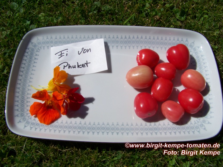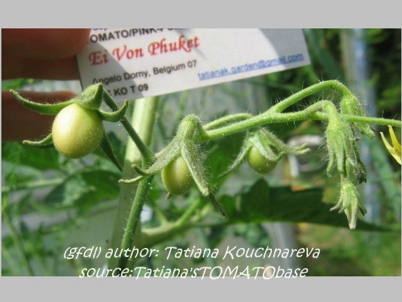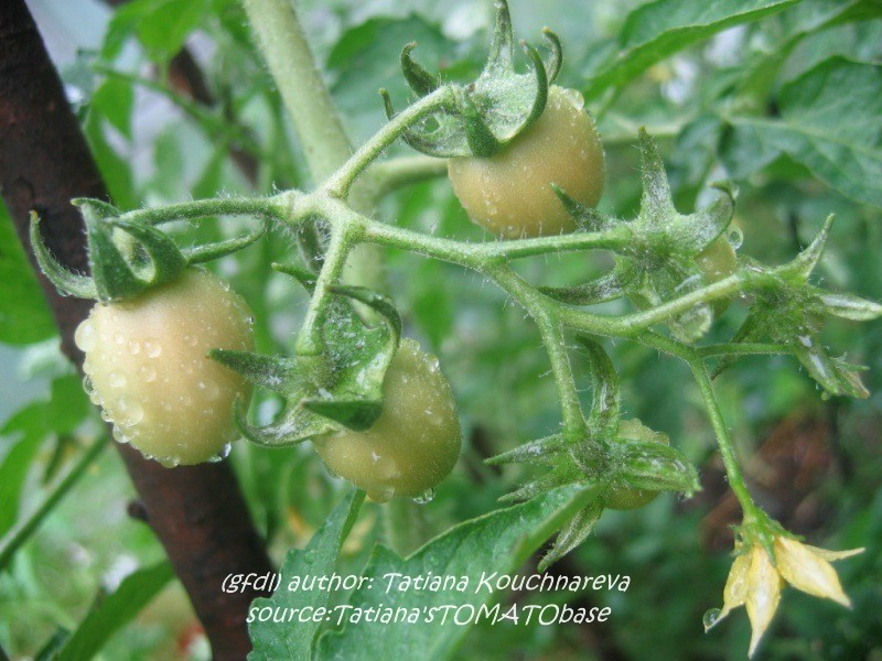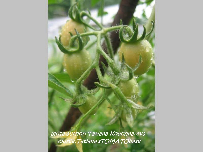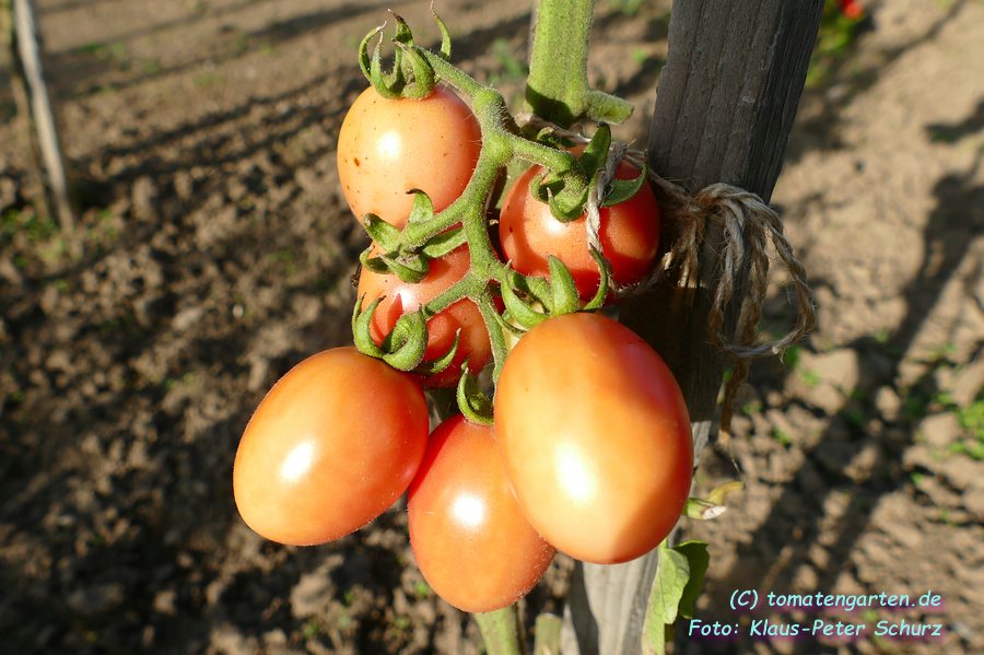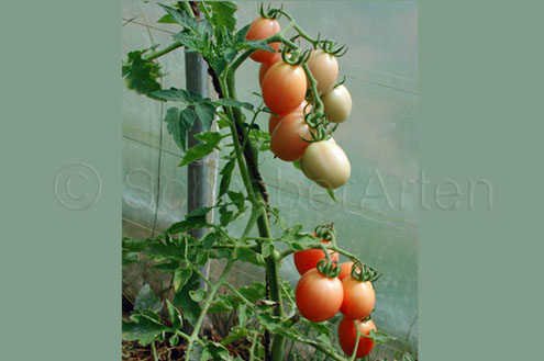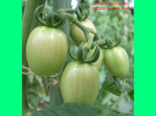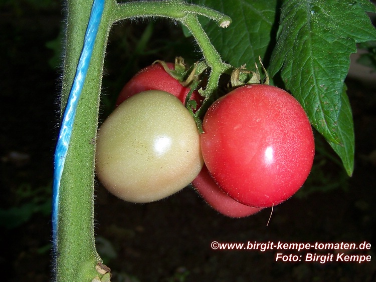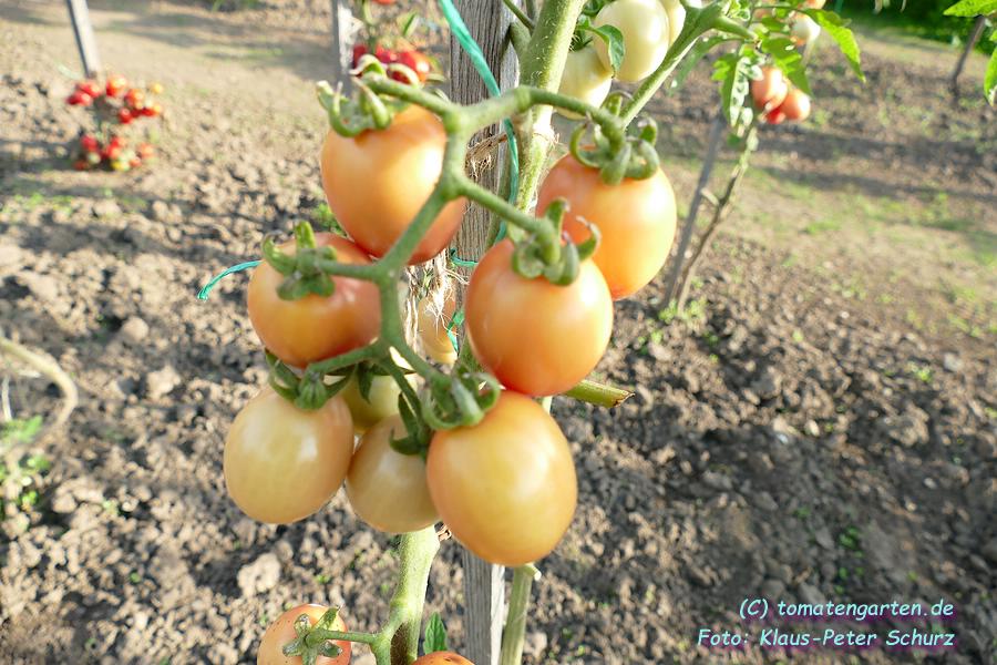 die Tomate bildet schöne Trauben aus und weist eine interessante Färbung auf, die Farbe wechselt über grün bis gelblich ins rosafarbene, der Geschmack ist gut