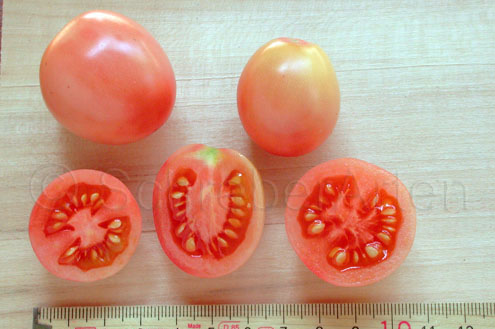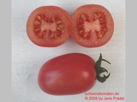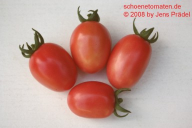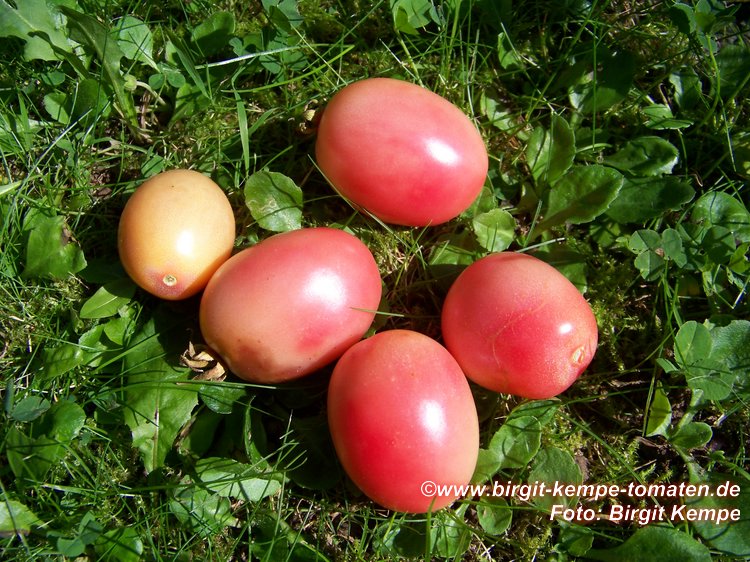 kleine (20-30 g schwere), feste, eiförmige (4-5 cm lange und 2,5-3 cm breite), bei Vollreife rosarote Früchte