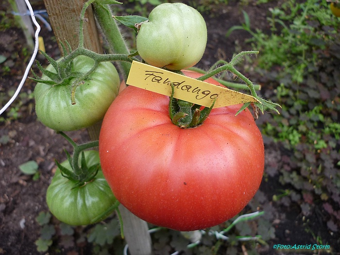 Fandango - große Pflanze (bis 2 m) früher Erntebeginn (Anfang August) reicher Ertrag sehr schöne, breitrunde, große, gleichmäßige, rote Früchte prima Geschmack, sehr saftig kurzum: eine ausgezeichnete Sorte schwerste geerntete Frucht (2003): 375 g schwerste geerntete Frucht (2004): 428 g schwerste geerntete Frucht (2006): 407 g (Quelle: www.schoenetomaten.de)