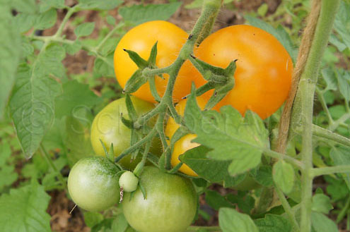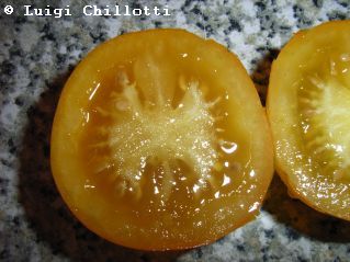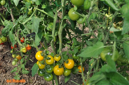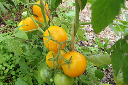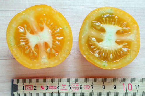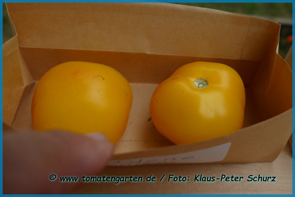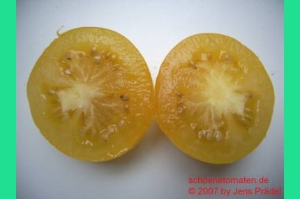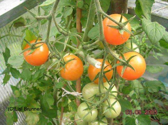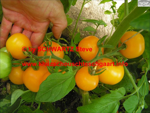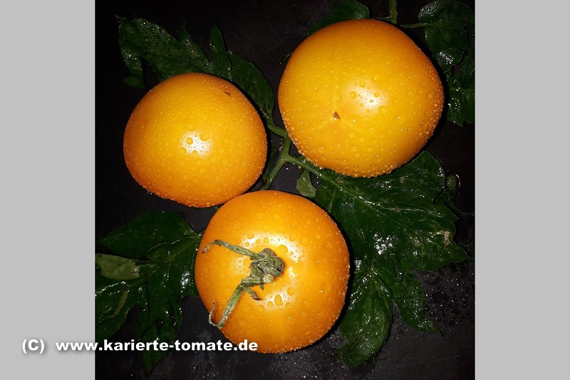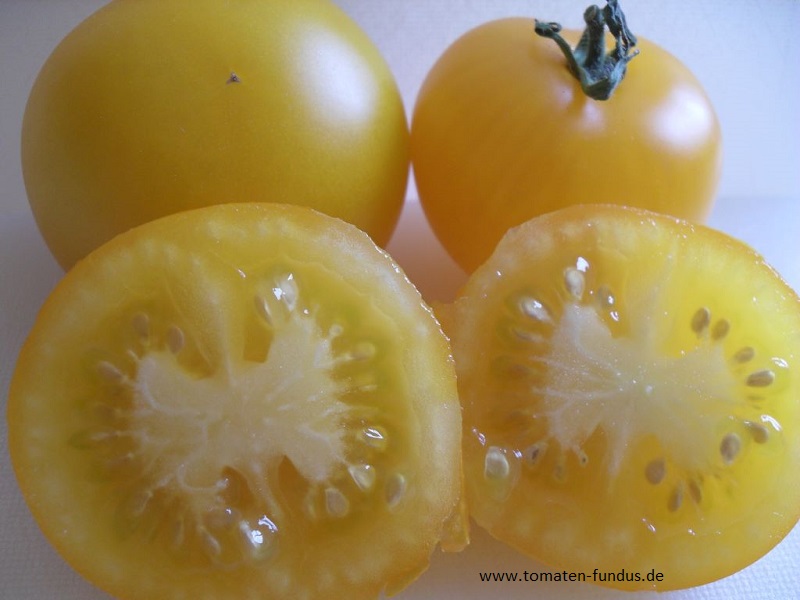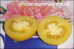 Goldene Königin - mittelgroße (bis 2 m) Pflanze mittelfrüher Erntebeginn (Mitte August) geringer Ertrag (in besseren Tomatenjahren sicher mehr) mittelgroße (ø 4 bis 5 cm, 60 bis 100 g), überwiegend gleichmäßig runde bis leicht flachrunde, dunkelgelbe Früchte, nicht ganz platzfest saftige Früchte mit einem schönen, milden Geschmack (Quelle: www.schoenetomaten.de)