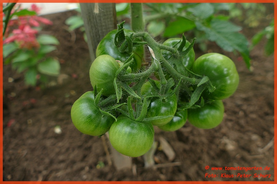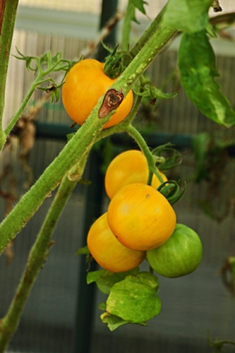 Die Sorte "Goldene Königin" war dieses Jahr, wie schon in den Jahren zuvor, die erste,die mir erfror. Dennoch finde ich gibt es wenige Tomatensorten, die grün geerntet und dann nachgereift, immer noch so gut schmecken.