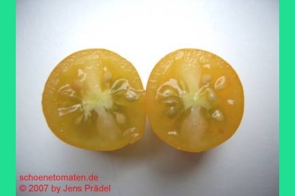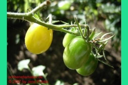 Golden Sweet - mittelgroße Pflanze (1,5 bis 2 m) mittelfrüher Erntebeginn (Mitte August) geringer Ertrag, da Pflanzen keinen optimalen Standort hatten, allerdings auch etwas empfindlich waren. kleine, ca. 10 bis 15 g schwere, tropfenförmige, gold-dunkelgelbe Früchte die auf der Samentüte versprochenen "großen Büschel mit bis zu 40 Früchten " kann ich nicht bestätigen. schöner, süßer Geschmack, saftig Anbau müßte für eine genauere Beurteilung wiederholt werden. (Quelle: www.schoenetomaten.de)
