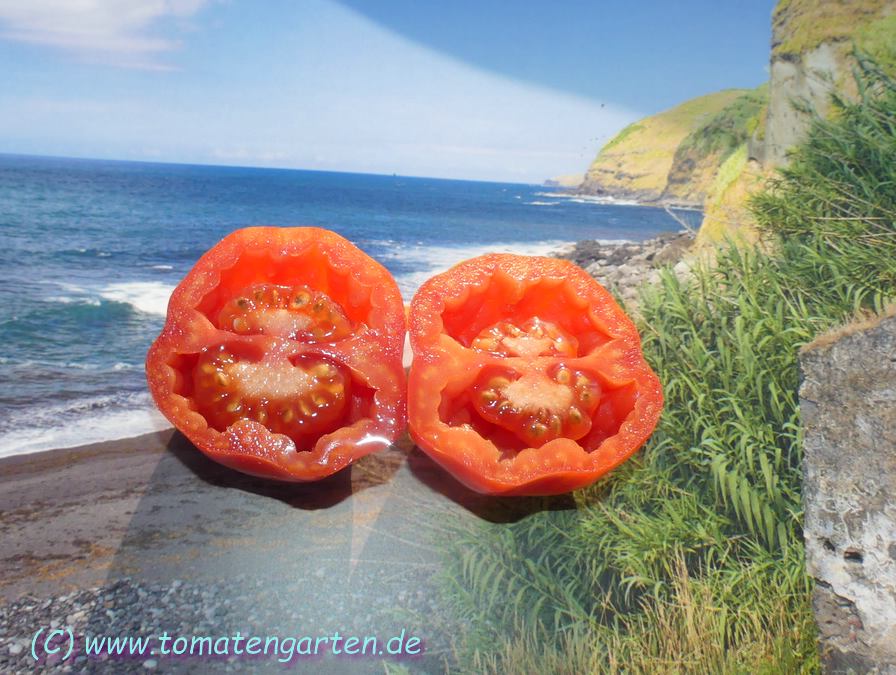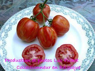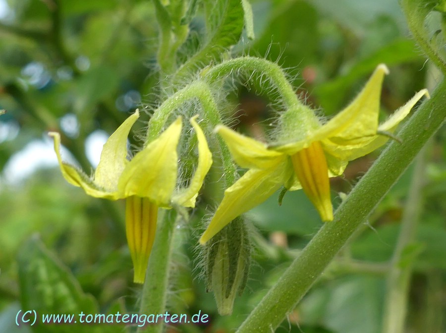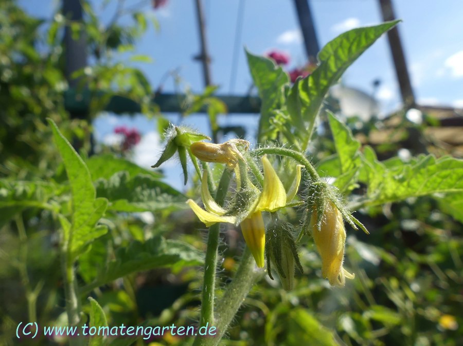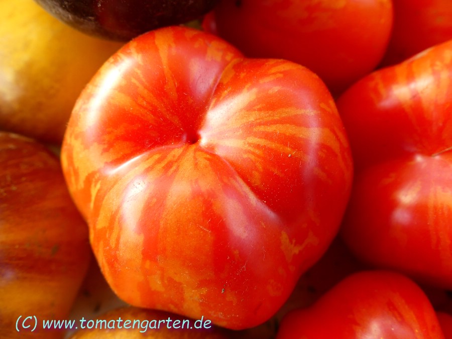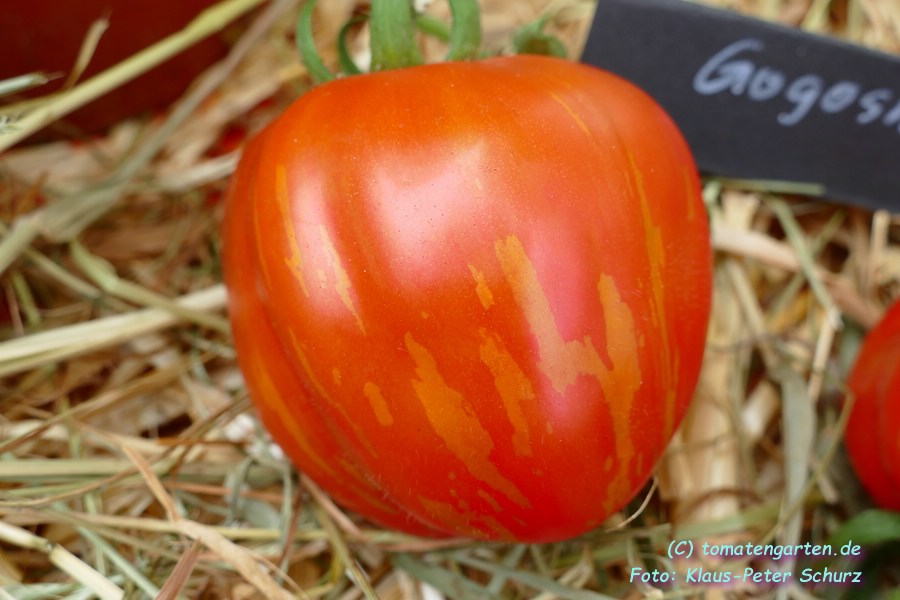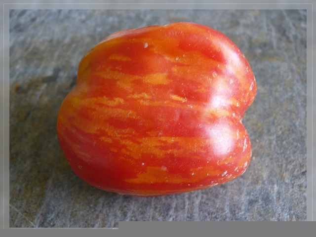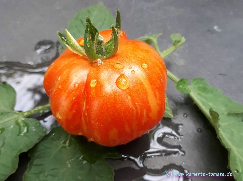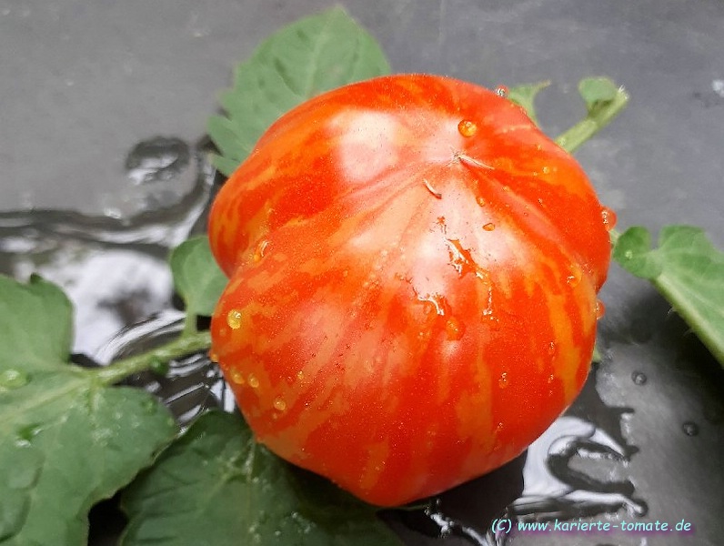 Angebaut 2021 und 2022 im Gewächshaus, Pflanze ca. 170cm hoch und sehr robust, 2triebig gezogen. Sehr hübsche Früchte, ca. 200g schwer, ca. 20 pro Pflanze. Hochrund und unregelmäßig, schwach gerippt. Ernte ab Mitte Juli - im letzten Jahr bis in den November hinein.