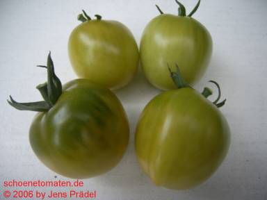 2023 und 2024 im Freiland-Kübel angebaut. Ohne Probleme. Pflanze bleibt recht niedrig, so 1-1,50m. Viele kleine, grüne ovale Früchte (3-5cm), die ähnlich Grün Zebra schmecken, also top .Ich zieh sie als Buschtomate und geize nicht aus. Wenn die grünen Früchte leicht gelblich werden, sind sie reif. Sie fallen dann auch leicht ab, was nicht stört, weil sie nicht platzen und auch dann noch sehr gut verwertbar sind.