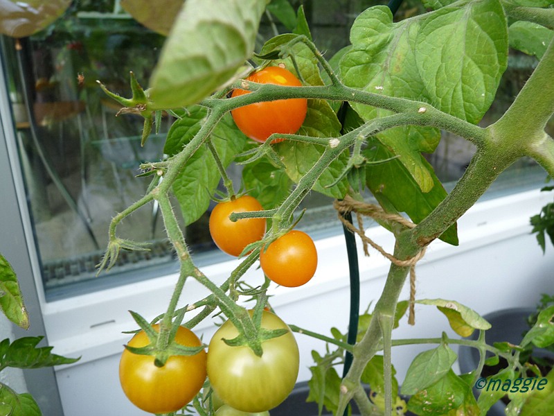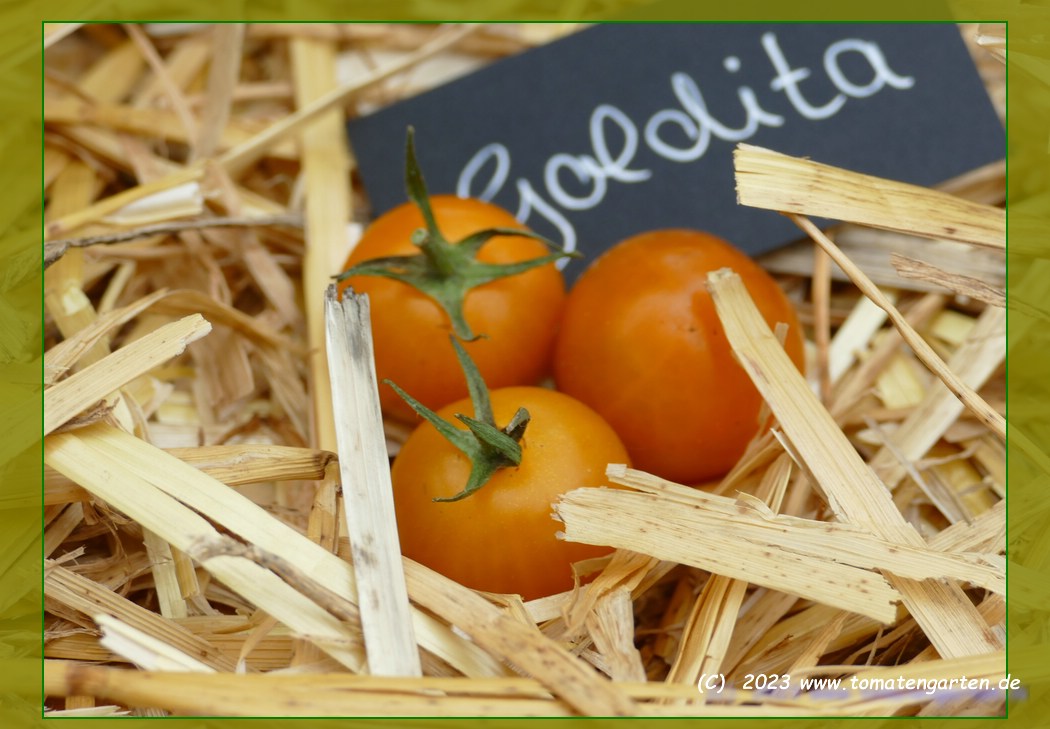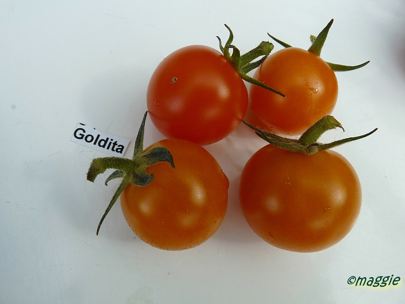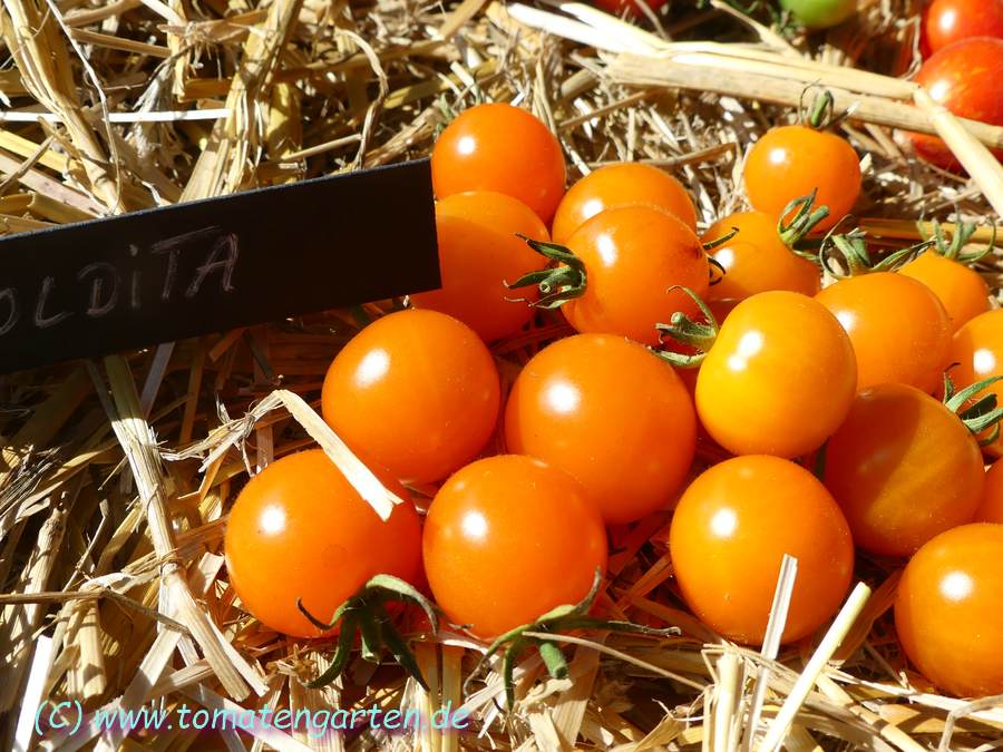 Ich bin von dieser Tomate begeistert, sie hat ab heuer einen Fixplatz im Tomatenbeet. Noch bei keiner Tomate hatte ich so hohe Erträge. Ein Vergleich: Teardrop die wir sehr lieben hat bis zum Ende des Spiralstabes drei Fruchstände, die sagenhafte Goldita 7 !!! Und wie süss die Früchte sind hmmmmm.....