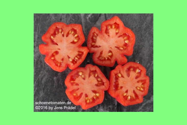 wurde bei Pro Specie Rara eine Zeitlang als Gezahnte Tomate Bührer-Keel geführt; evtl identisch mit Gezahnte II, Zahnrad, Zapotec (Zitat ginsterfarm)