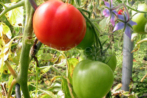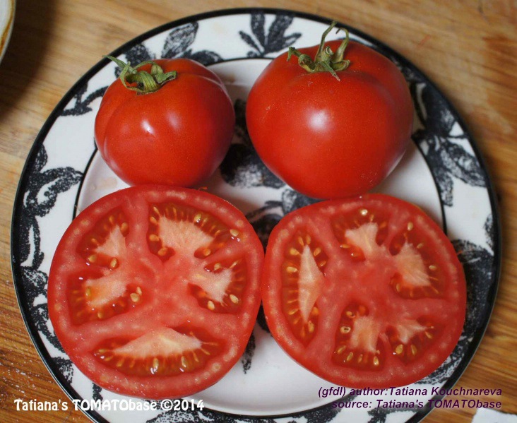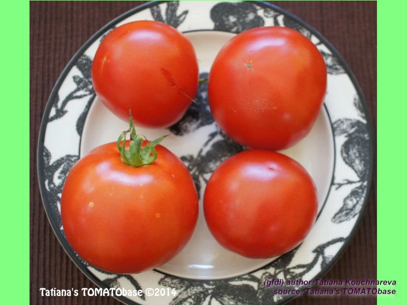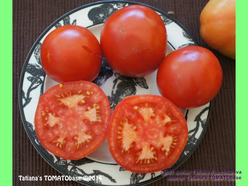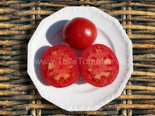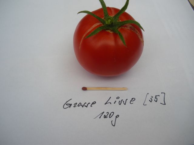 Grosse Lisse - mittelgroße Pflanze ( bis 1,5 m) später Erntebeginn (Ende August) vergleichsweise geringer Ertrag große (100 bis 180 g), runde, glatte, rote Früchte guter, solider Geschmack selbst unter Tomatendach starker Braunfäulebefall (Quelle: www.schoenetomaten.de)