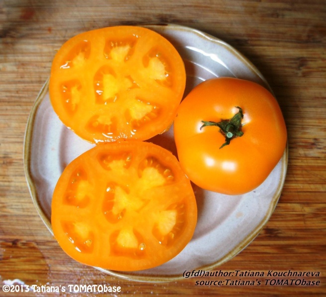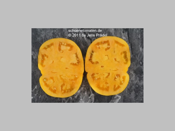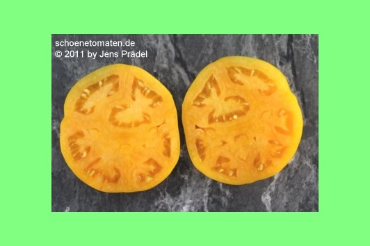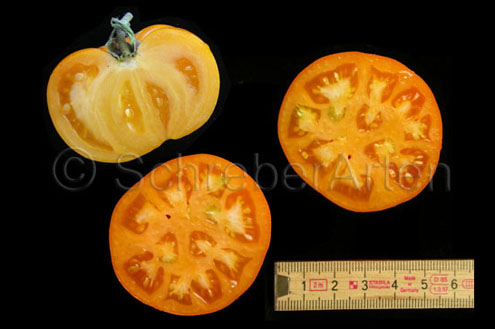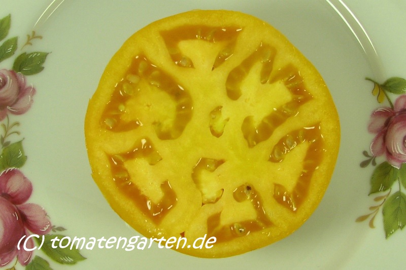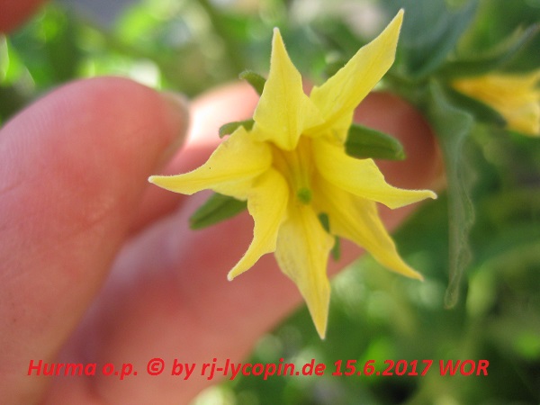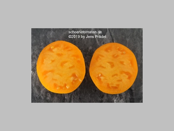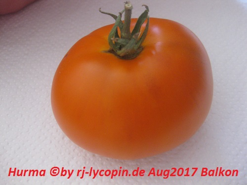 einhellige Lieblingtomate meiner Abgabe-Jungpflanzen 2019; benimmt sich wuchstechnisch vorbildlich, offenbar kübelgeeignet, feste Haut, lange Lagerfähigkeit, herrliche Farbe, gleichmäßige Früchte innen und außen, recht gesundes Laub. Eine aufgeschnittene 'Hurma' macht einfach Lust auf Tomatensalat.