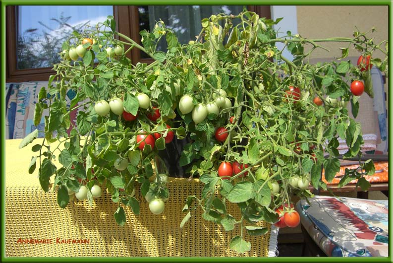 Sehr frühe Tomate, bei mir die erste Sorte, die reif war. Aber für mich auch geschmacklich eher langweilig. Sieht aber hübsch aus und kann man gut als Ampeltomate verwenden.