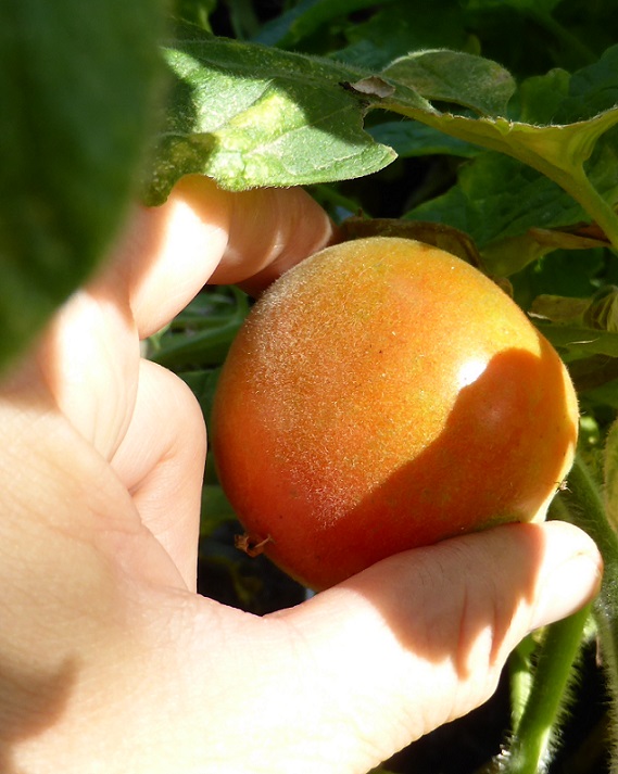 Die gesamte Pflanze ist wollig, vor allem die Jungtriebe. Auch die fertige Frucht hat Pfirsichhaut.