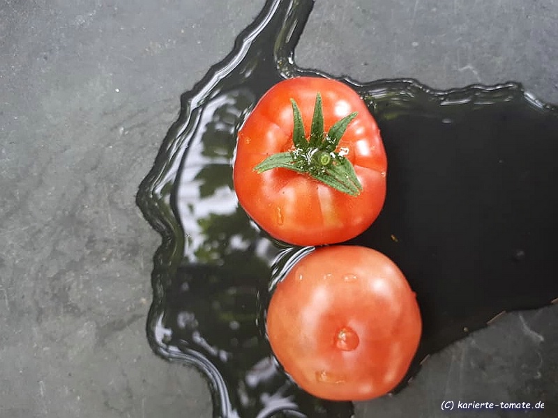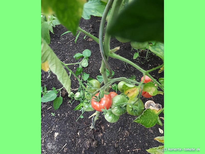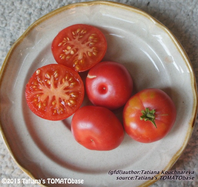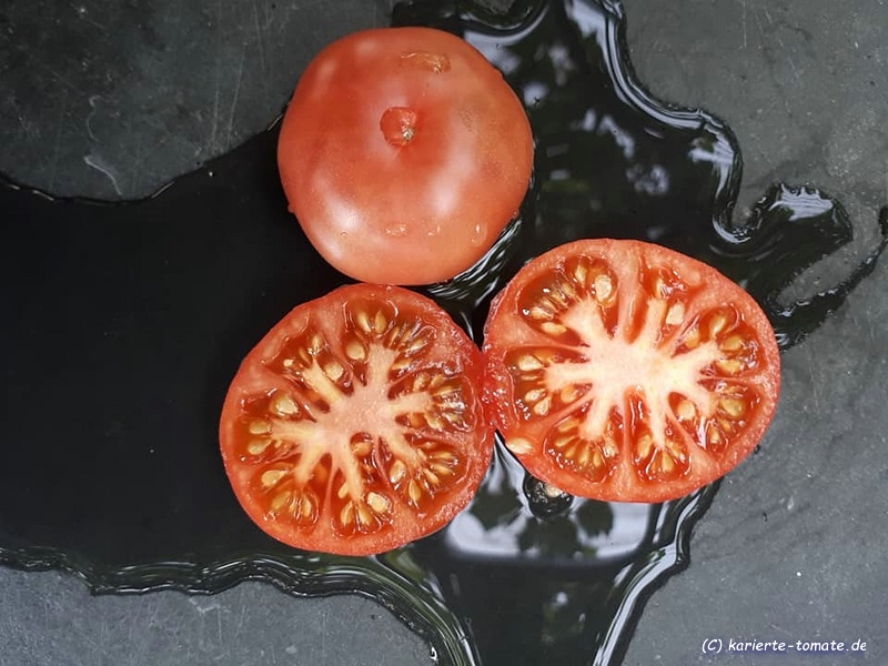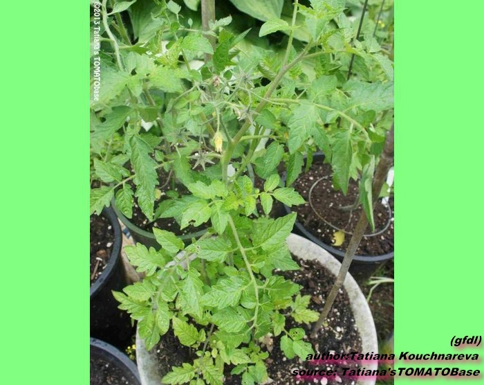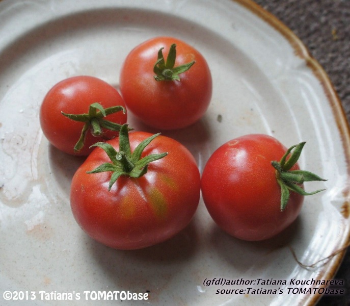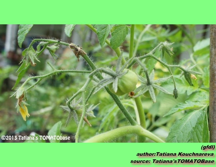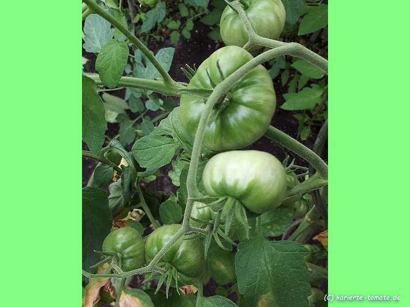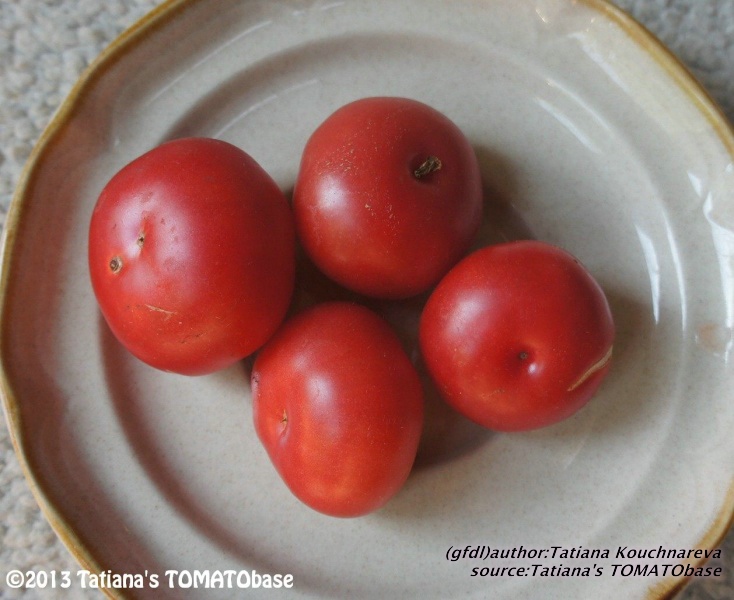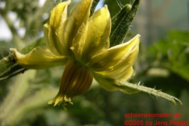 Hank - sehr große Pflanze (2 bis 2,5 m) sehr später Erntebeginn (Ende August) reich tragend sehr kleine (30 bis 40 g), breitrunde, gerippte, rote Früchte teilweise auch ungewöhnliche Formen Eine der kleinsten Fleischtomaten! kräftiger säuerlicher Geschmack (Quelle: www.schoenetomaten.de)